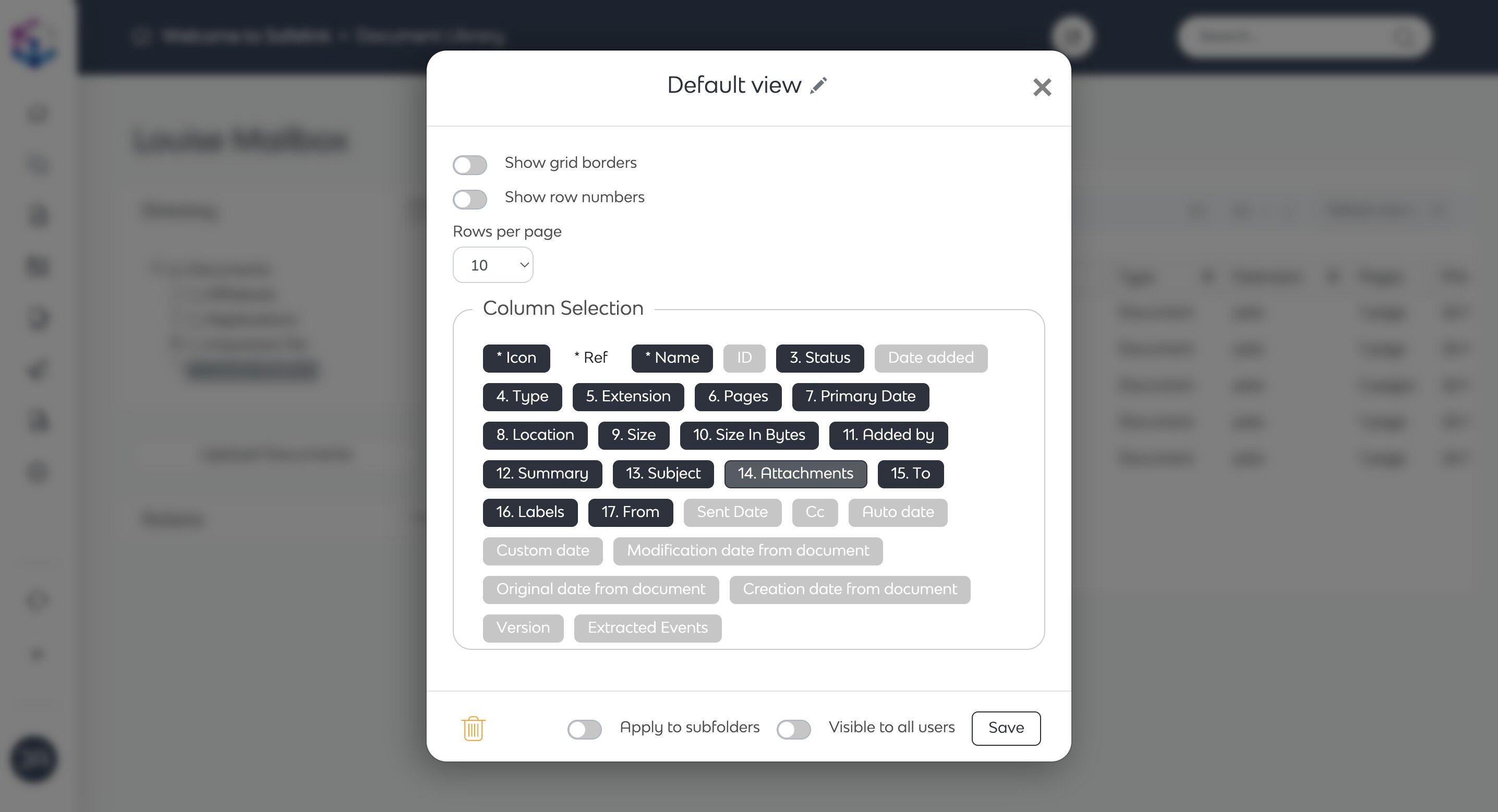 Neatly view email attachments in Grid View. Just add the 'Attachment' column to your files to access a view of your email attachments.