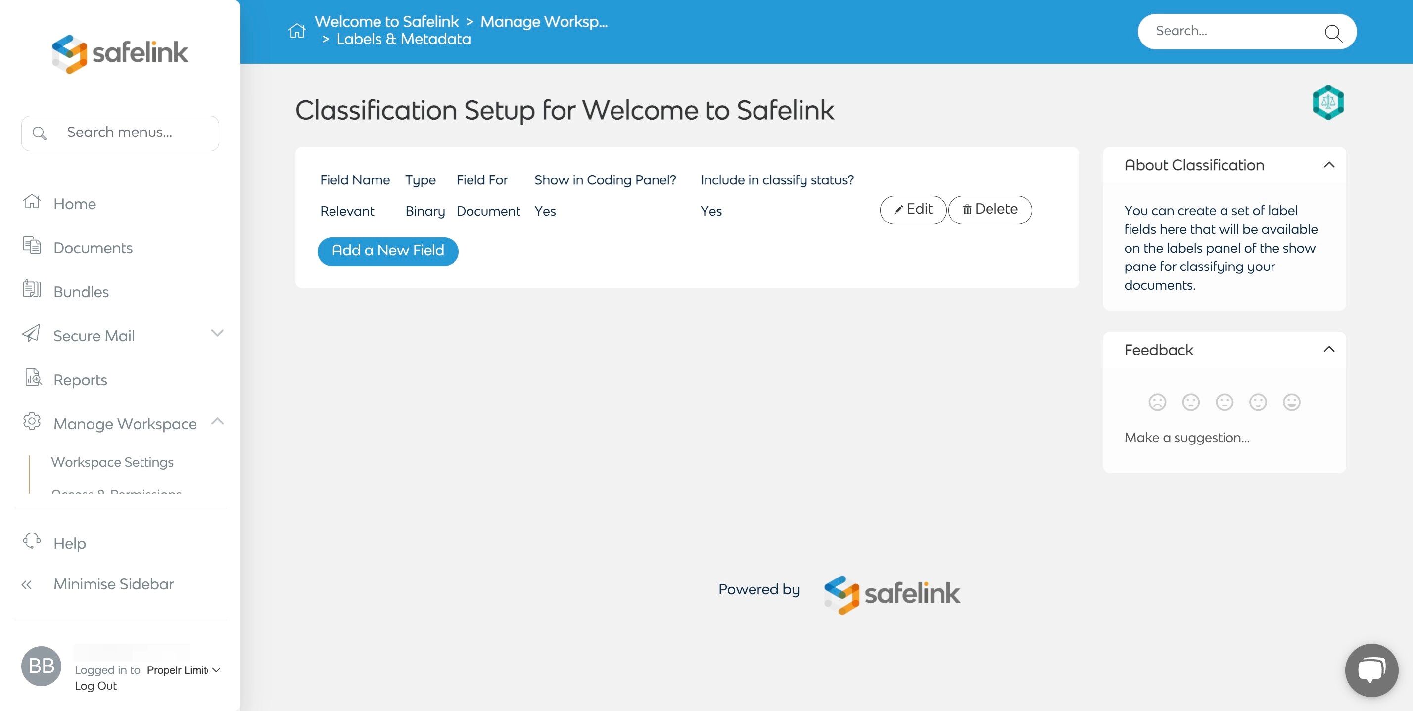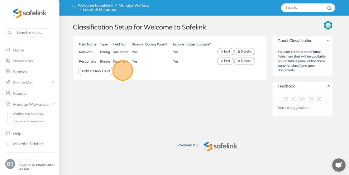 - On the classification setup screen, you can add a new field or edit an existing field. Click Add a New Field.