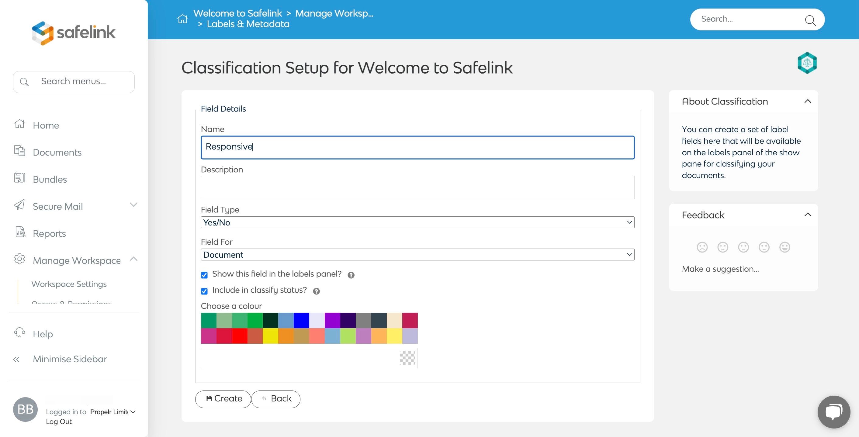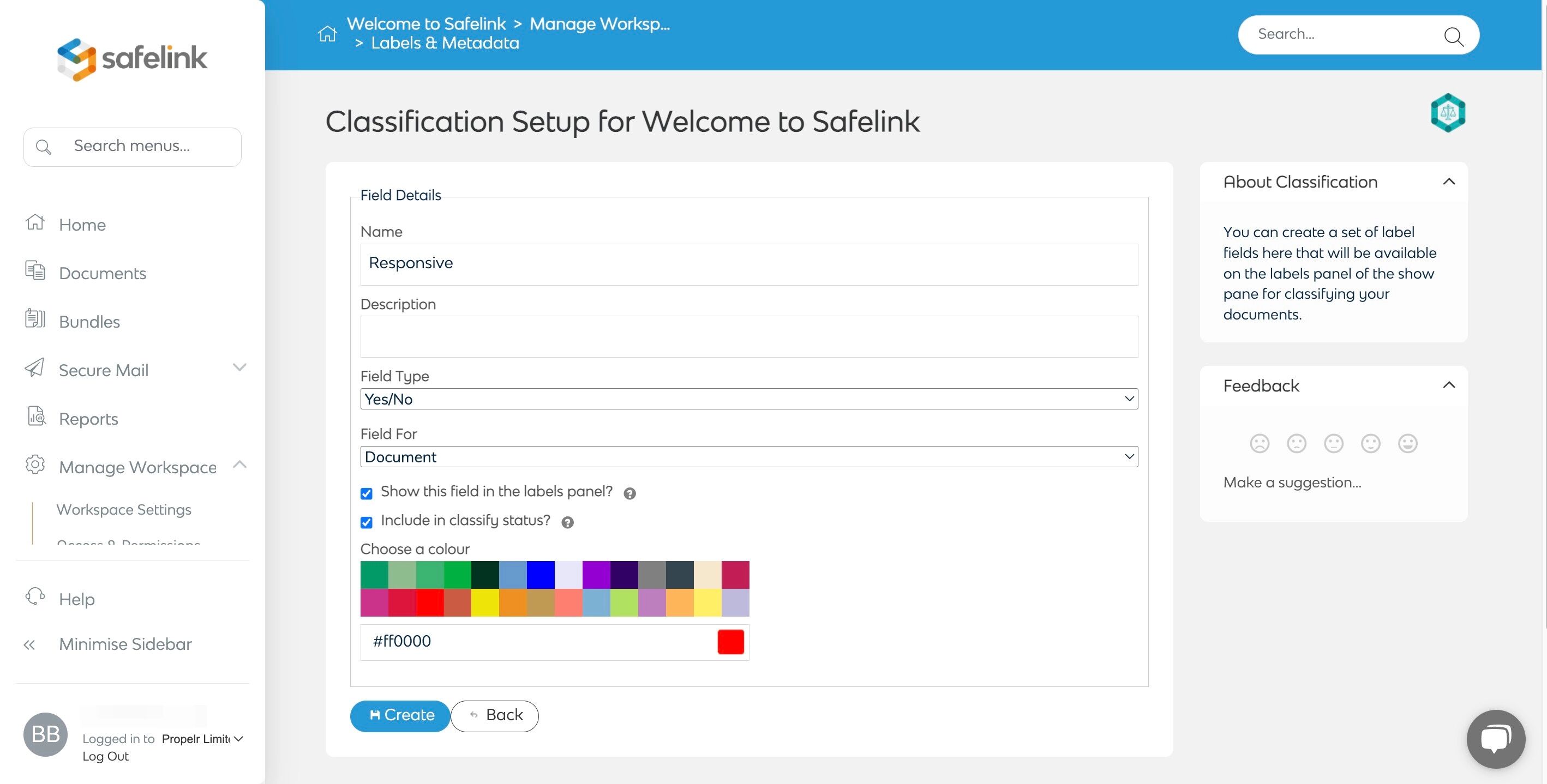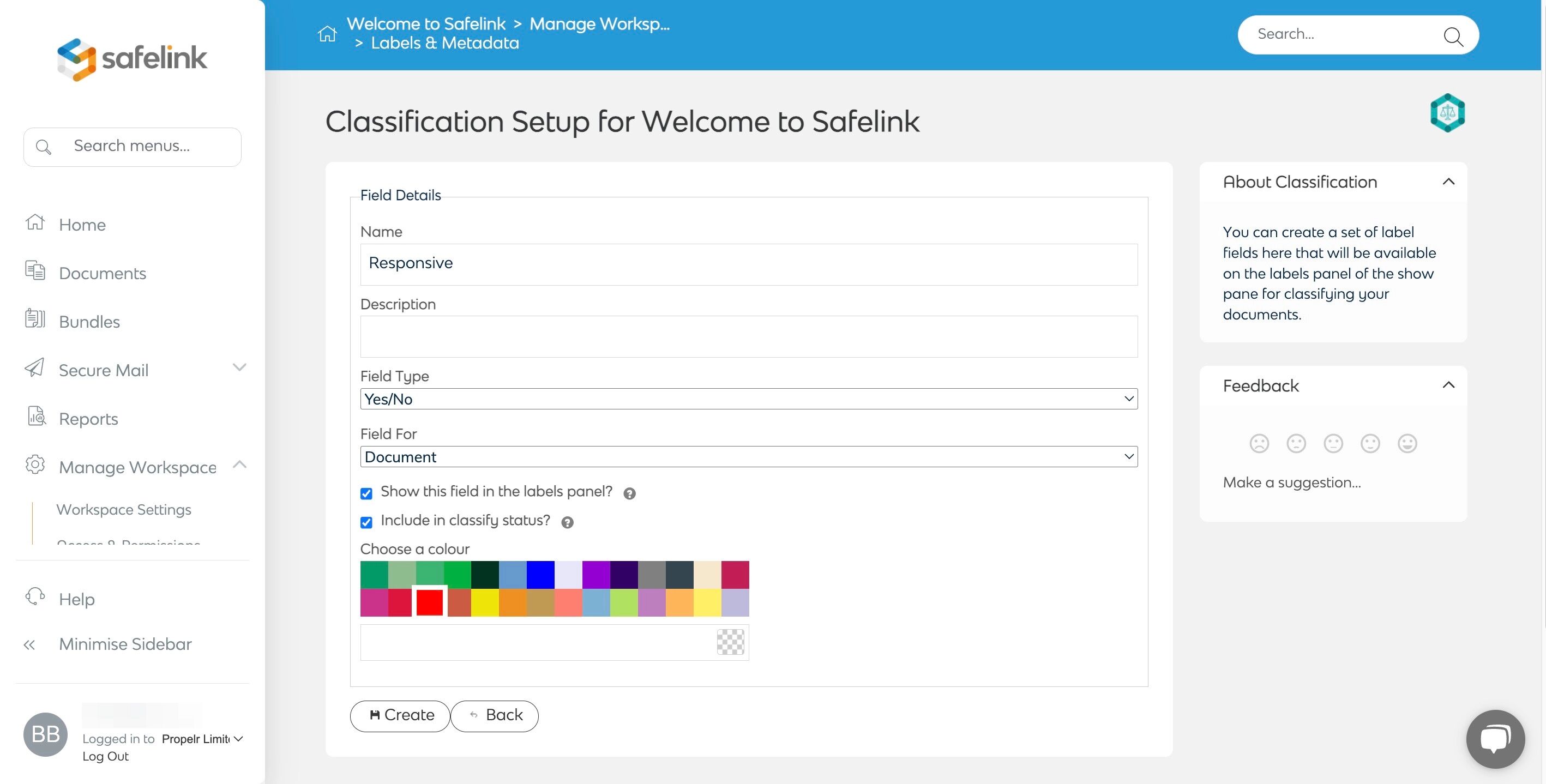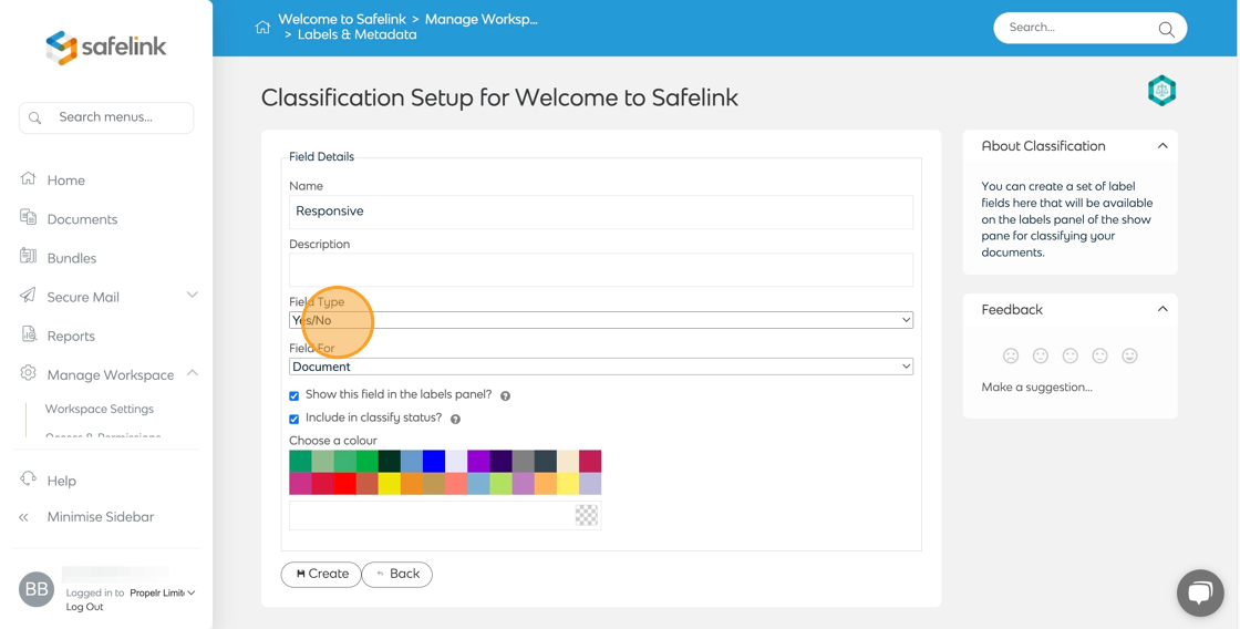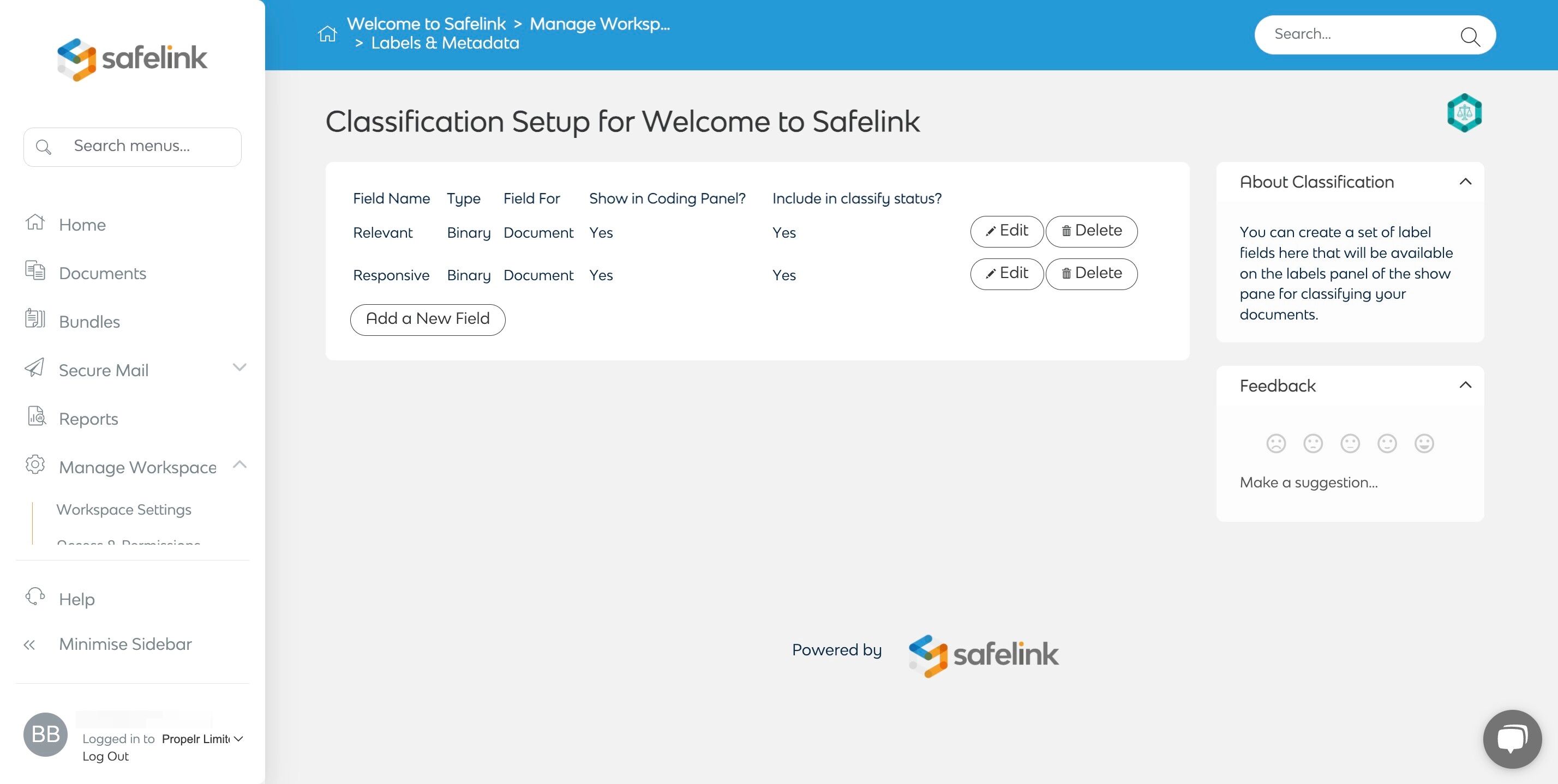 Create a Customised Set of Fields to Tag and Add Metadata to Documents When Classifying. The Document Coding App Must Be Enabled in Order for This to Work.