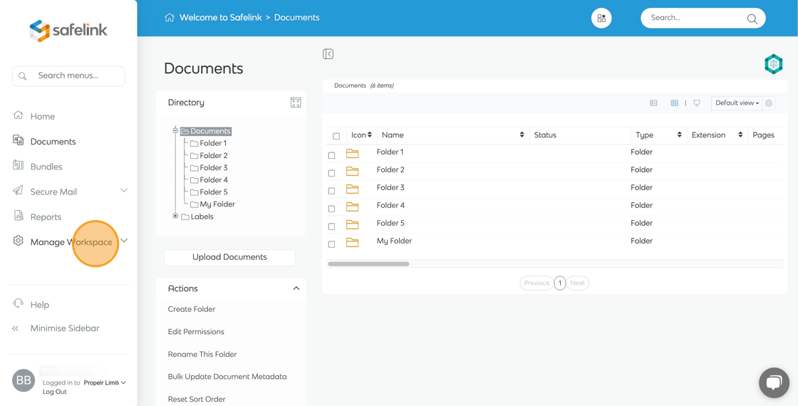 - The system will direct you back to your workspace's homepage. Next, click Manage Workspace.
