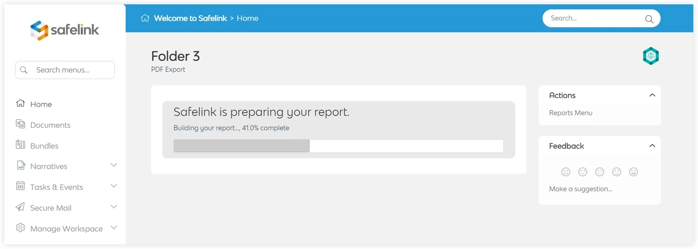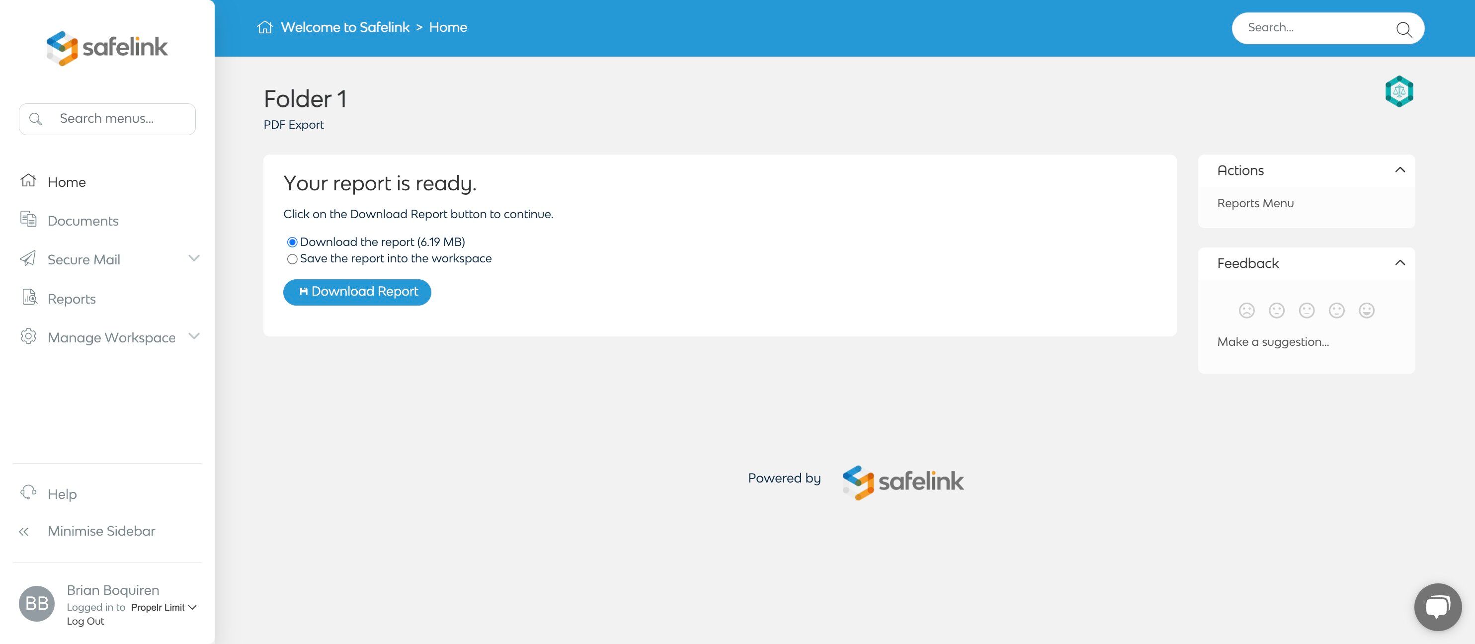 Building bigger folders/files will take some time to build. - Once your PDF is ready, you can download the report or save it to your room.