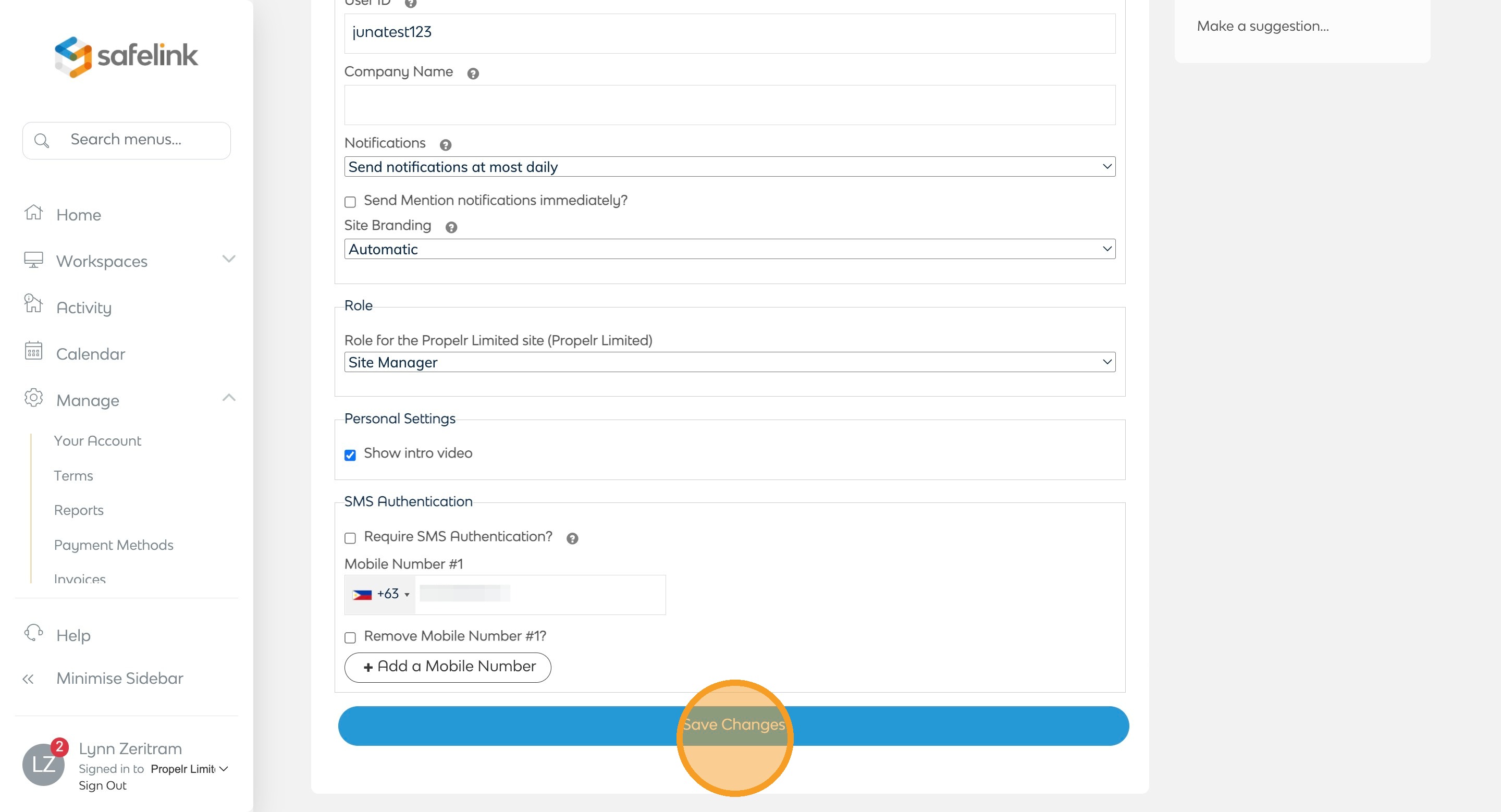 - Here you can change your company name, notification preference and show or hide the intro video. Please click Save Changes to save your changes.