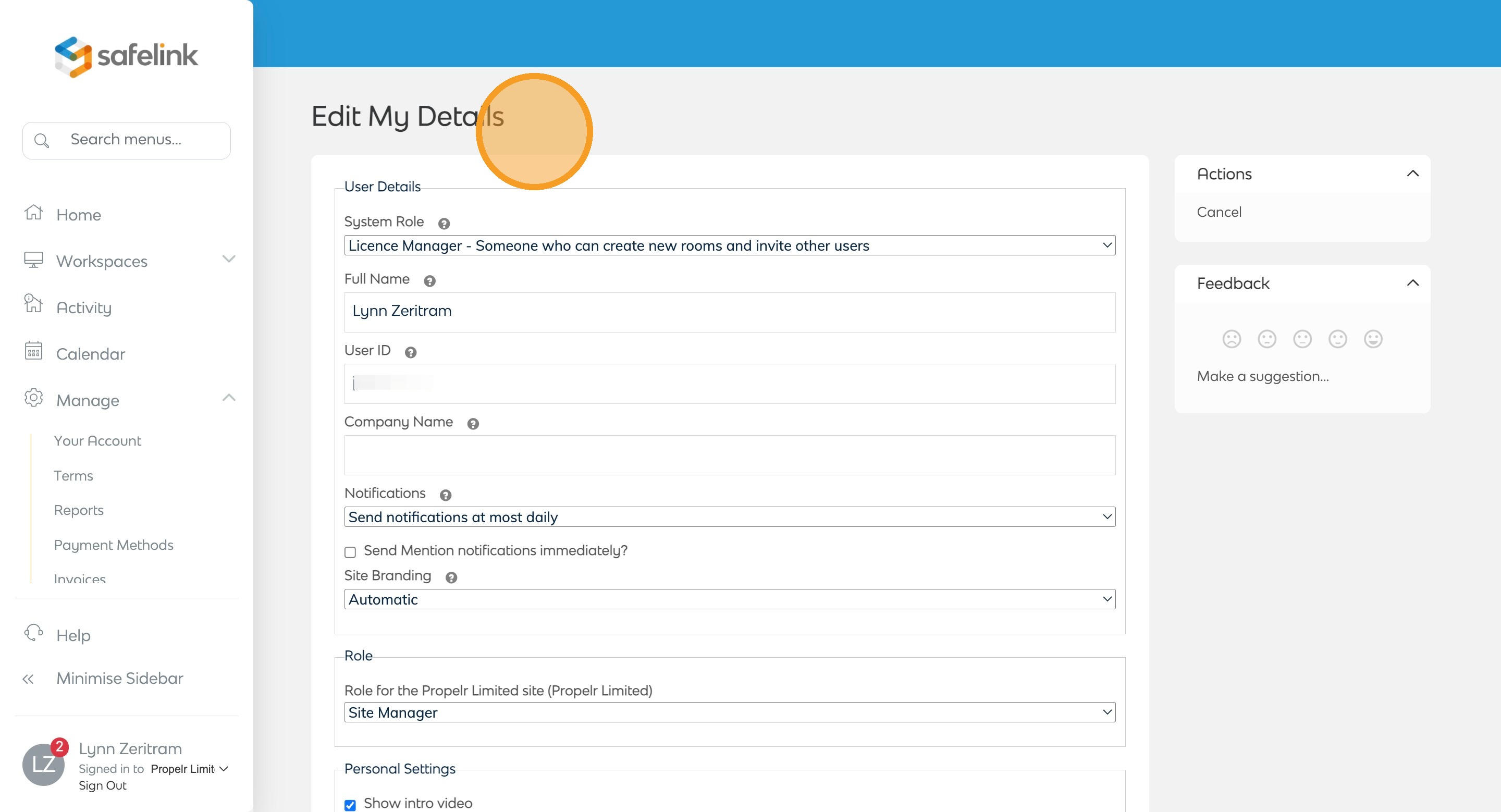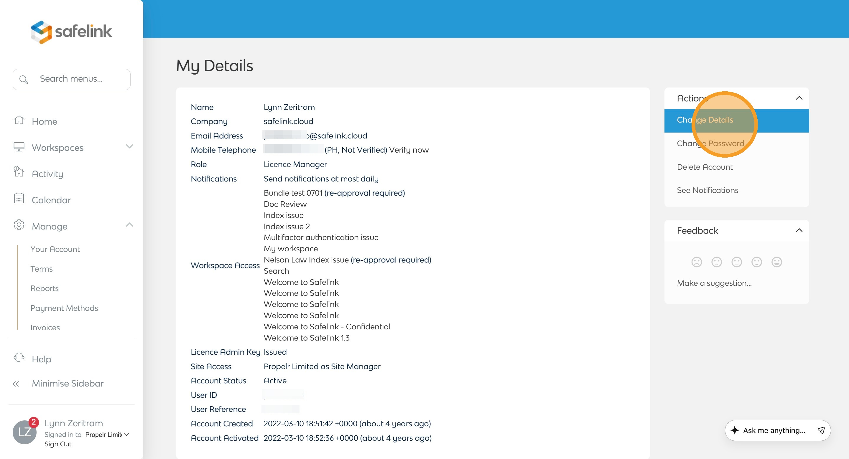 - Select the Edit My Details tab at the top or click Change Details from the actions menu.
