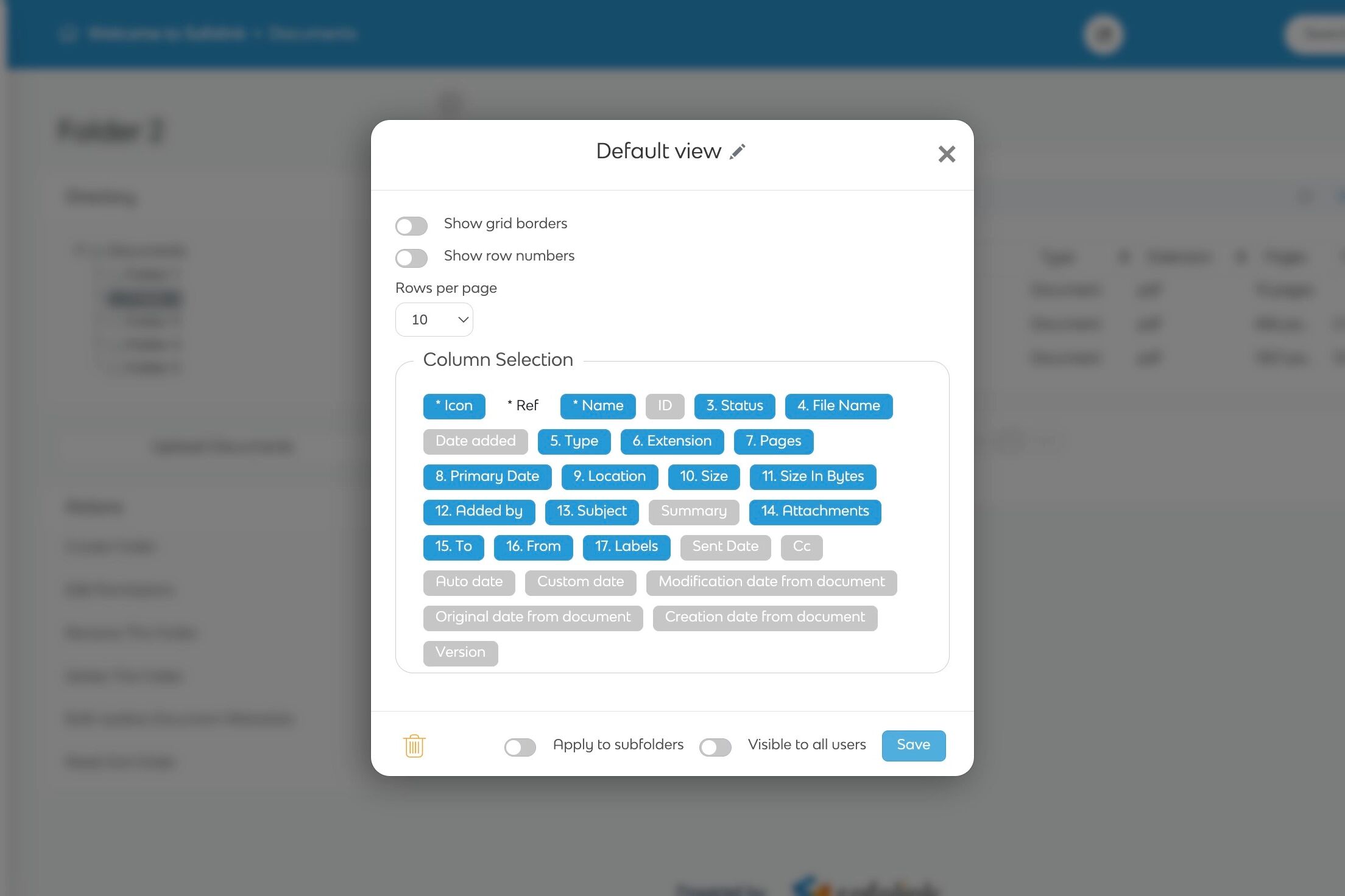 - You can also select Apply to subfolders to add the column to all the folders in your workspace. Then, click Save.