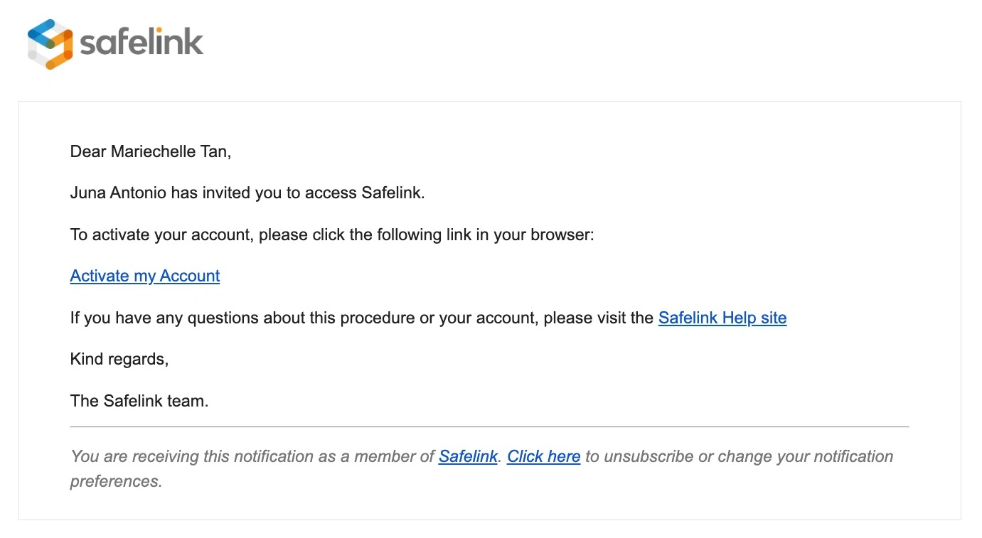 - The invitation email will include an activation link.