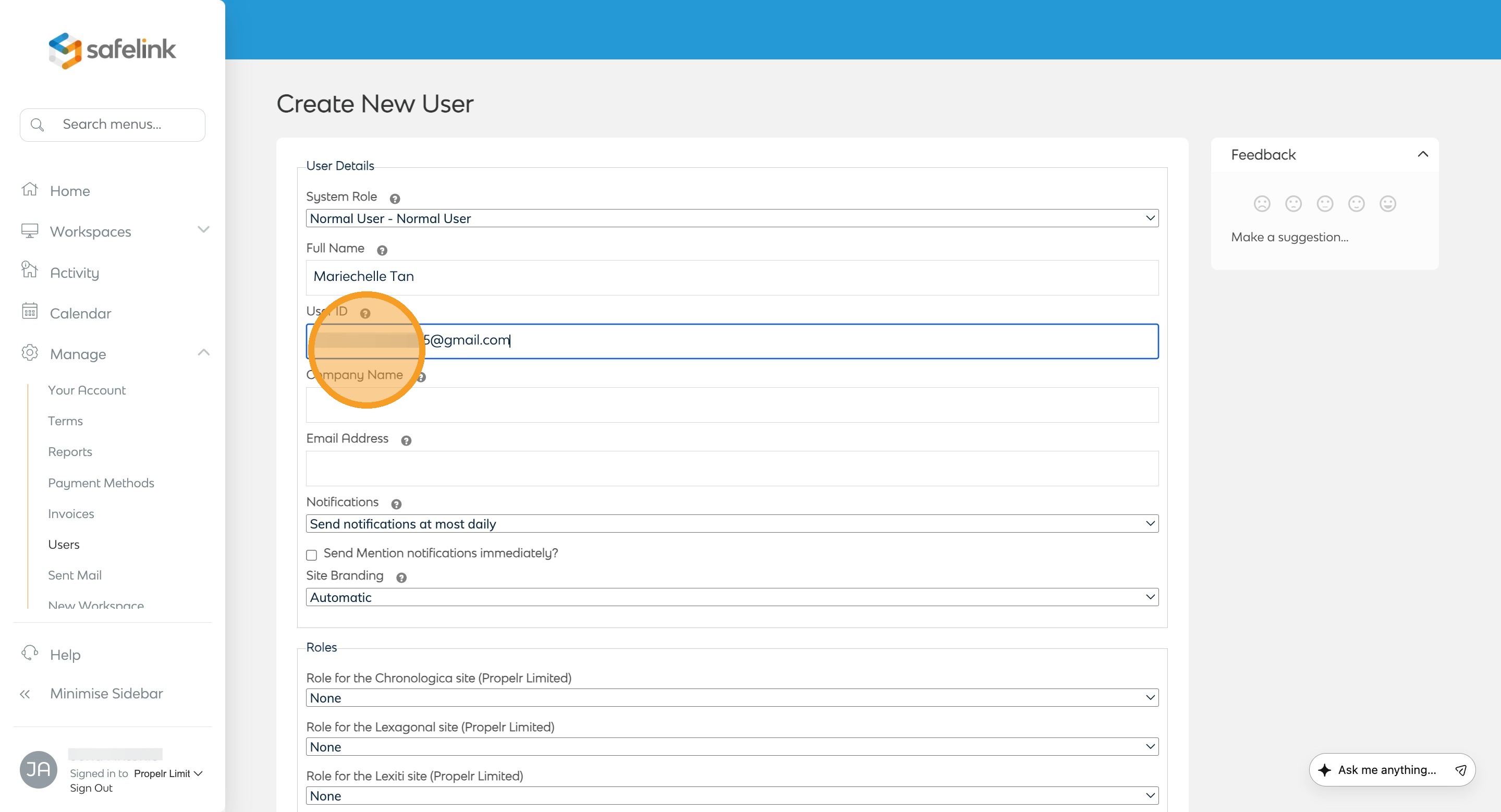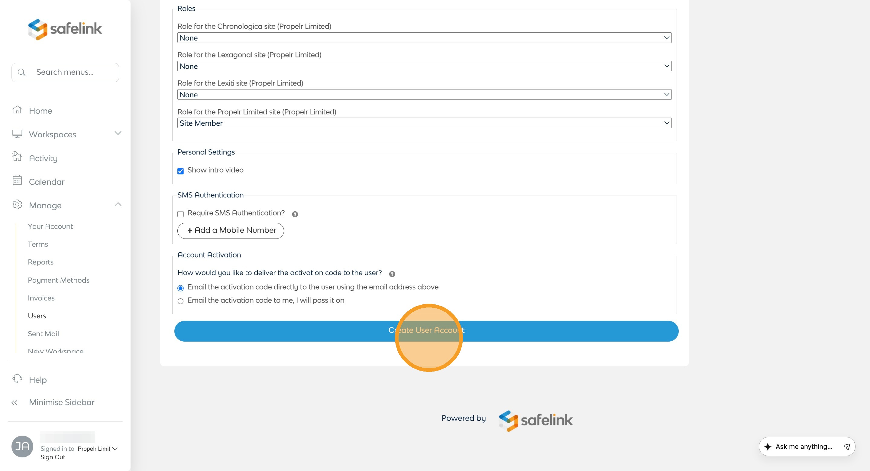 - Click Create User Account.