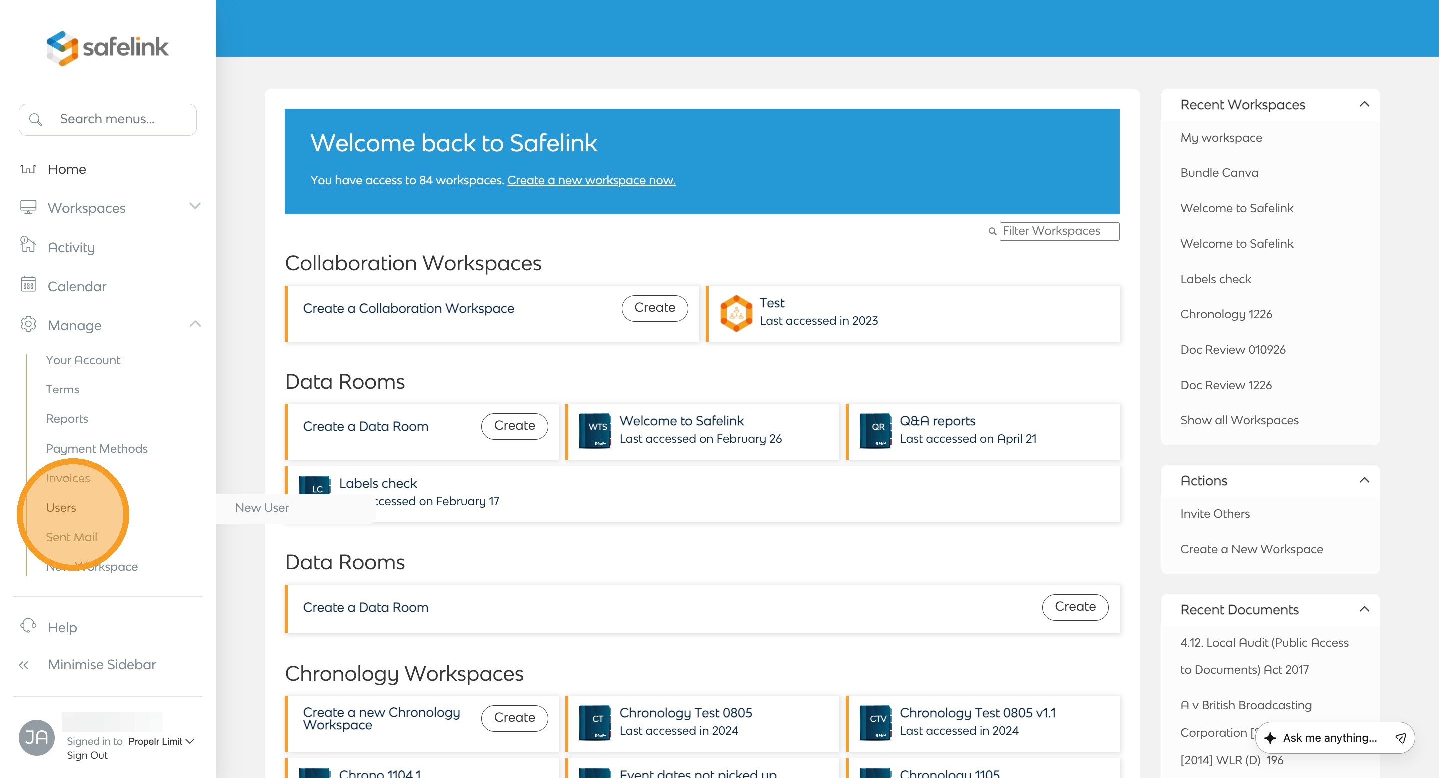 - Click Create user account from the actions menu on the right.