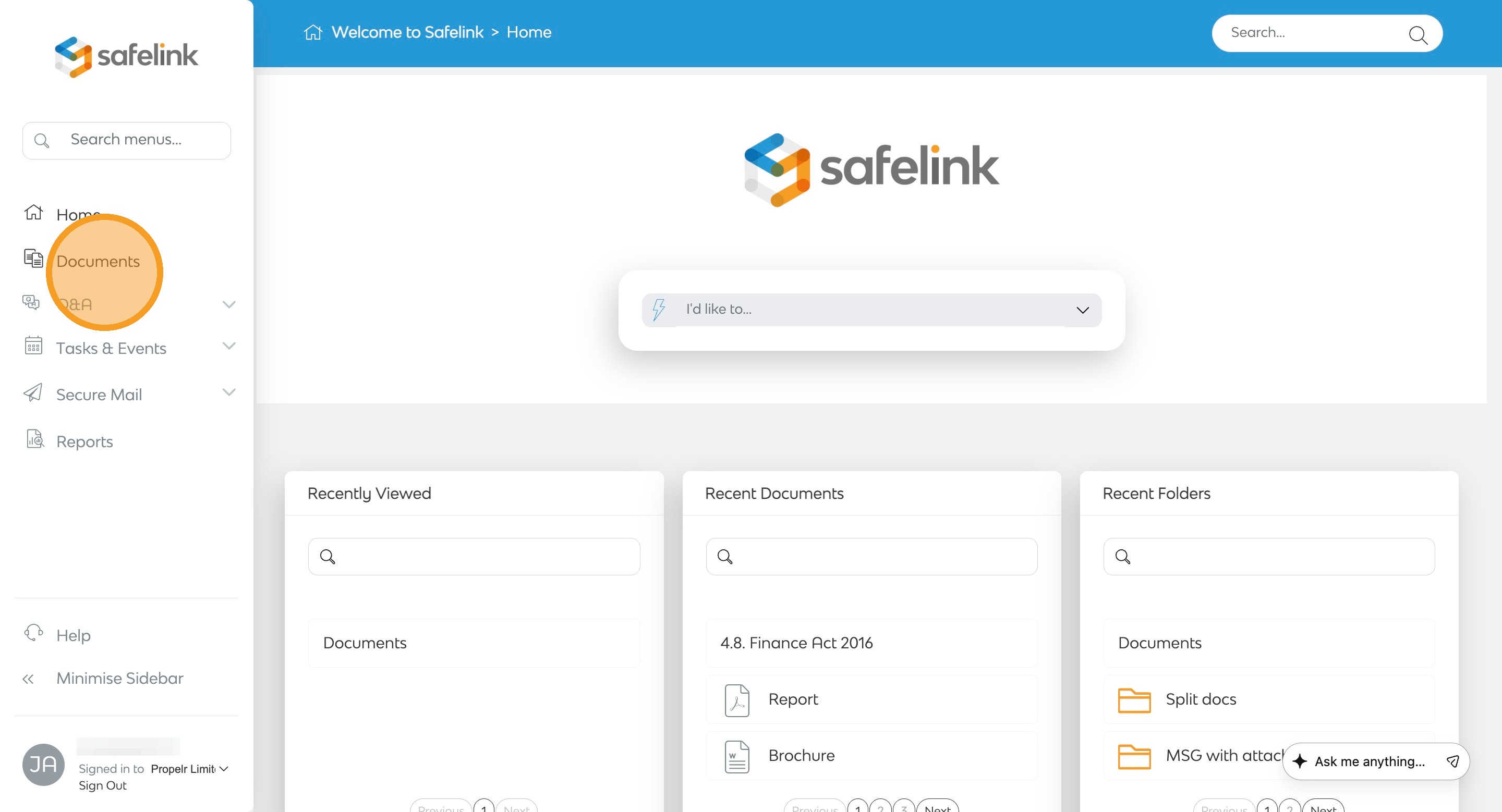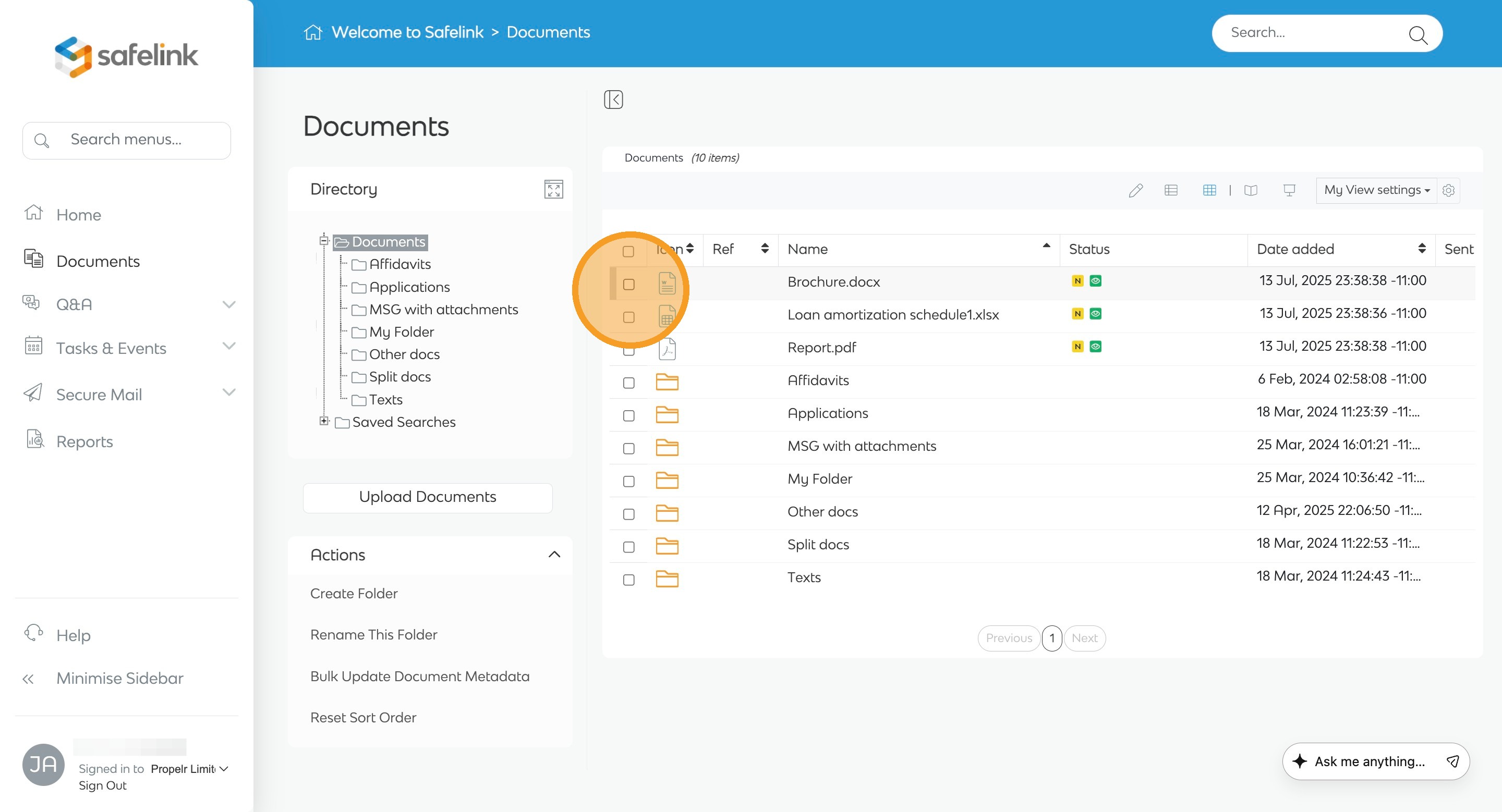 - Open your workspace and go to the Documents tab.