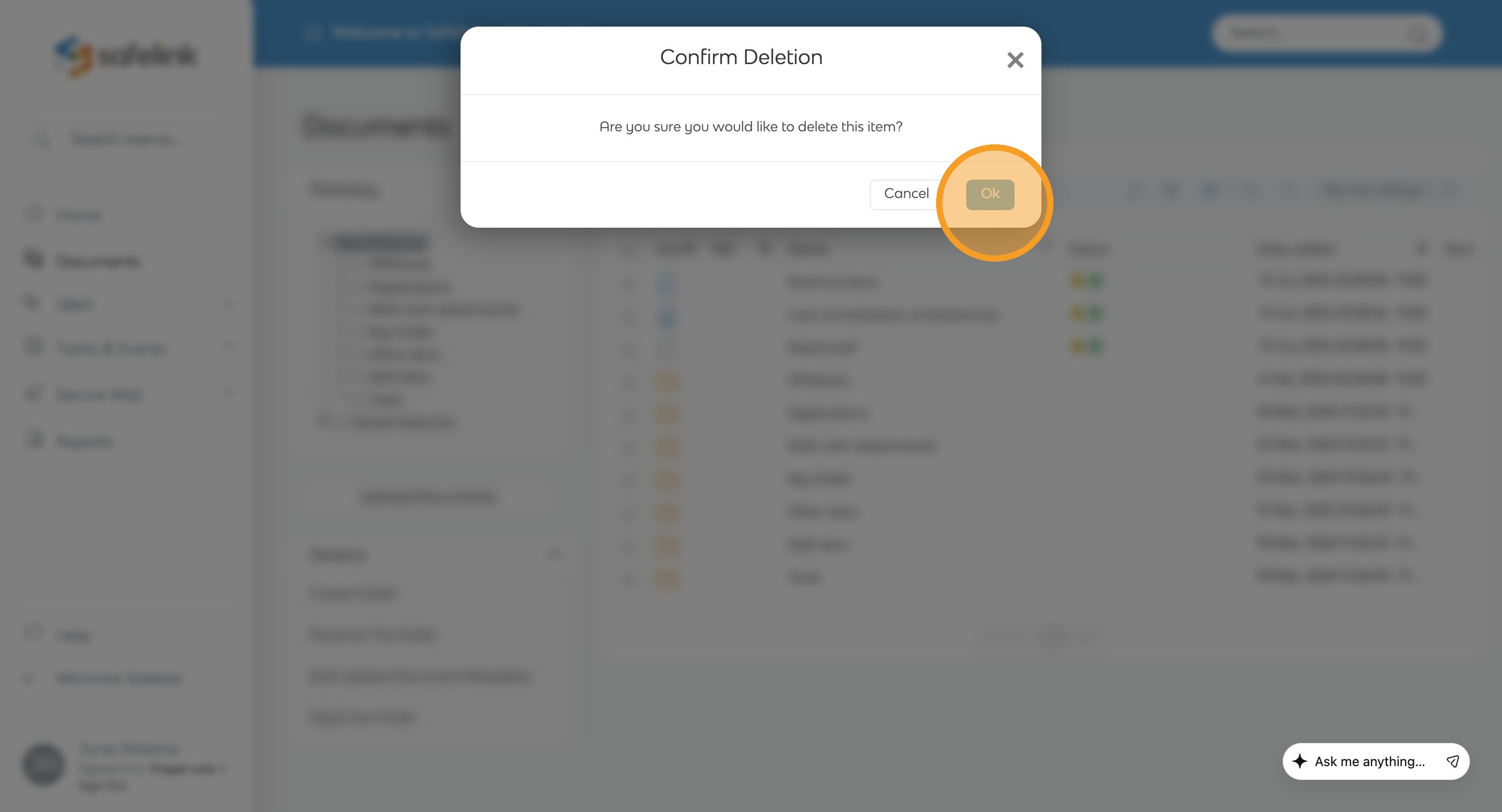 - Select the document or folder that you would like to delete.