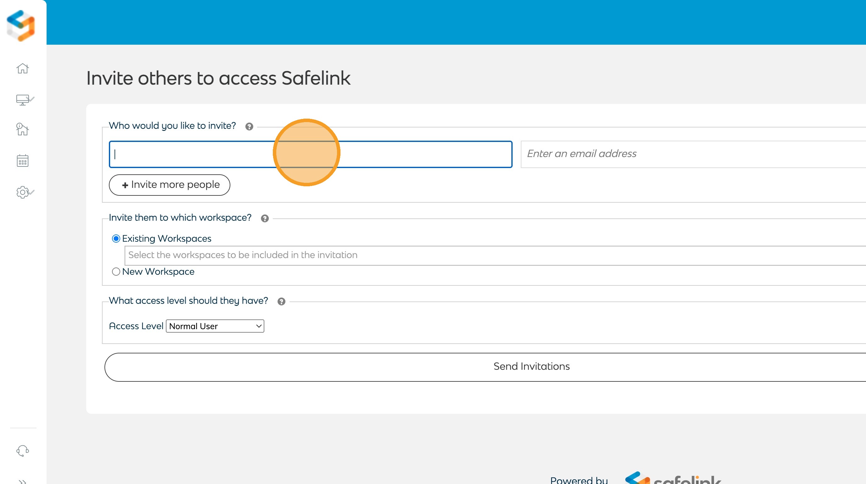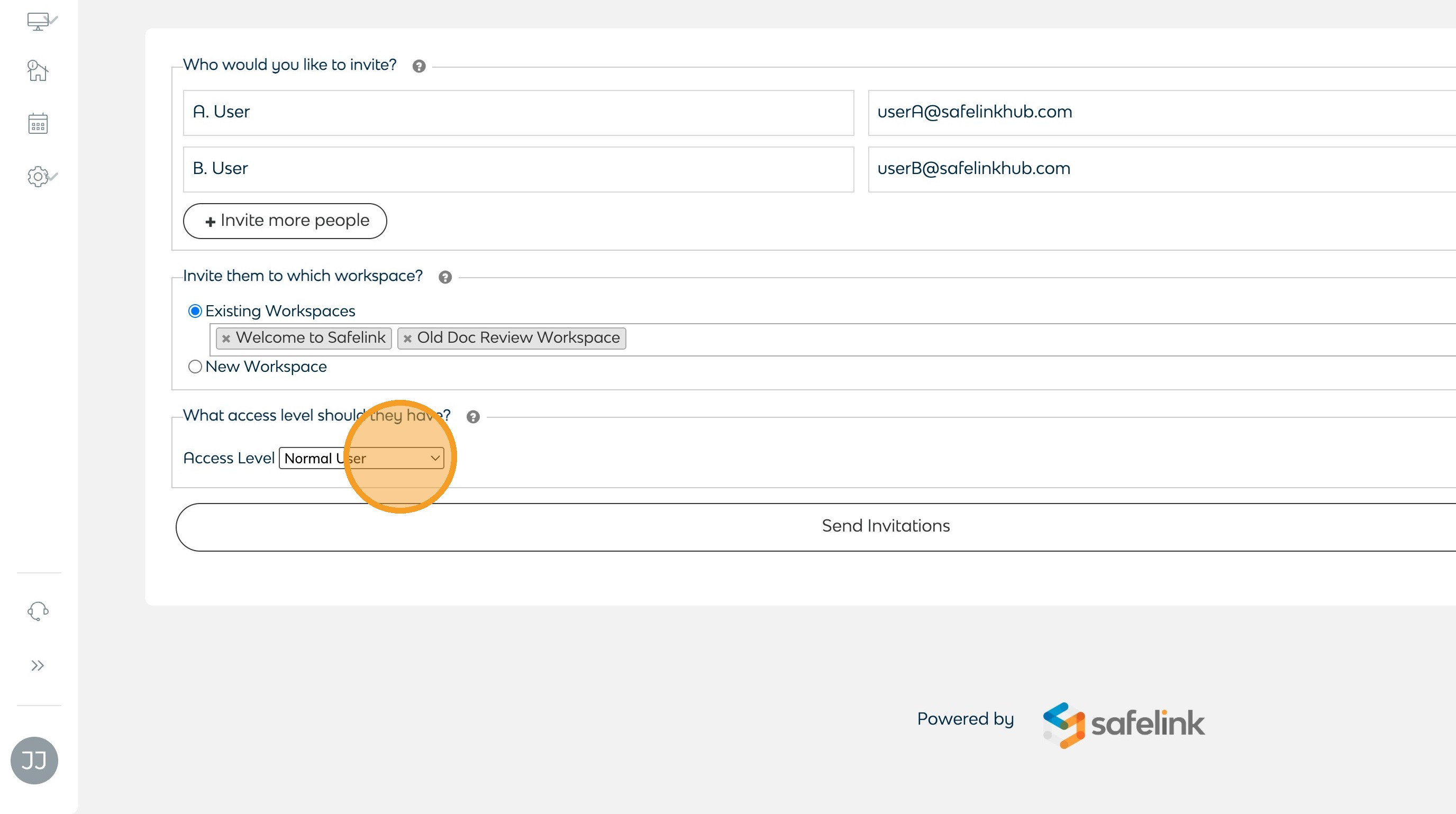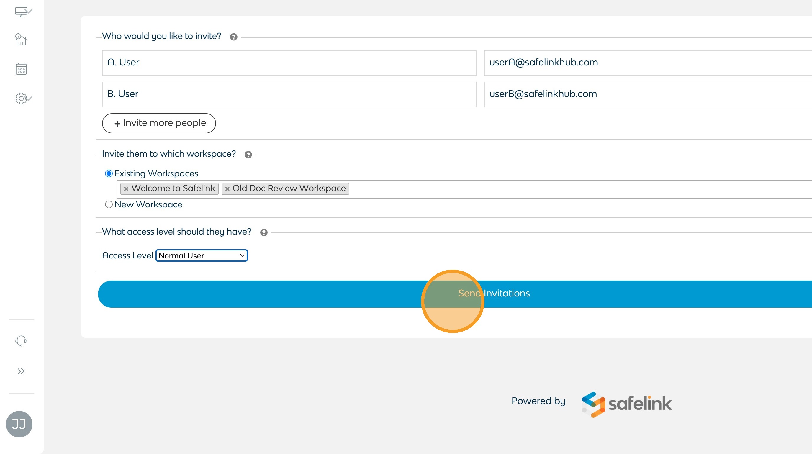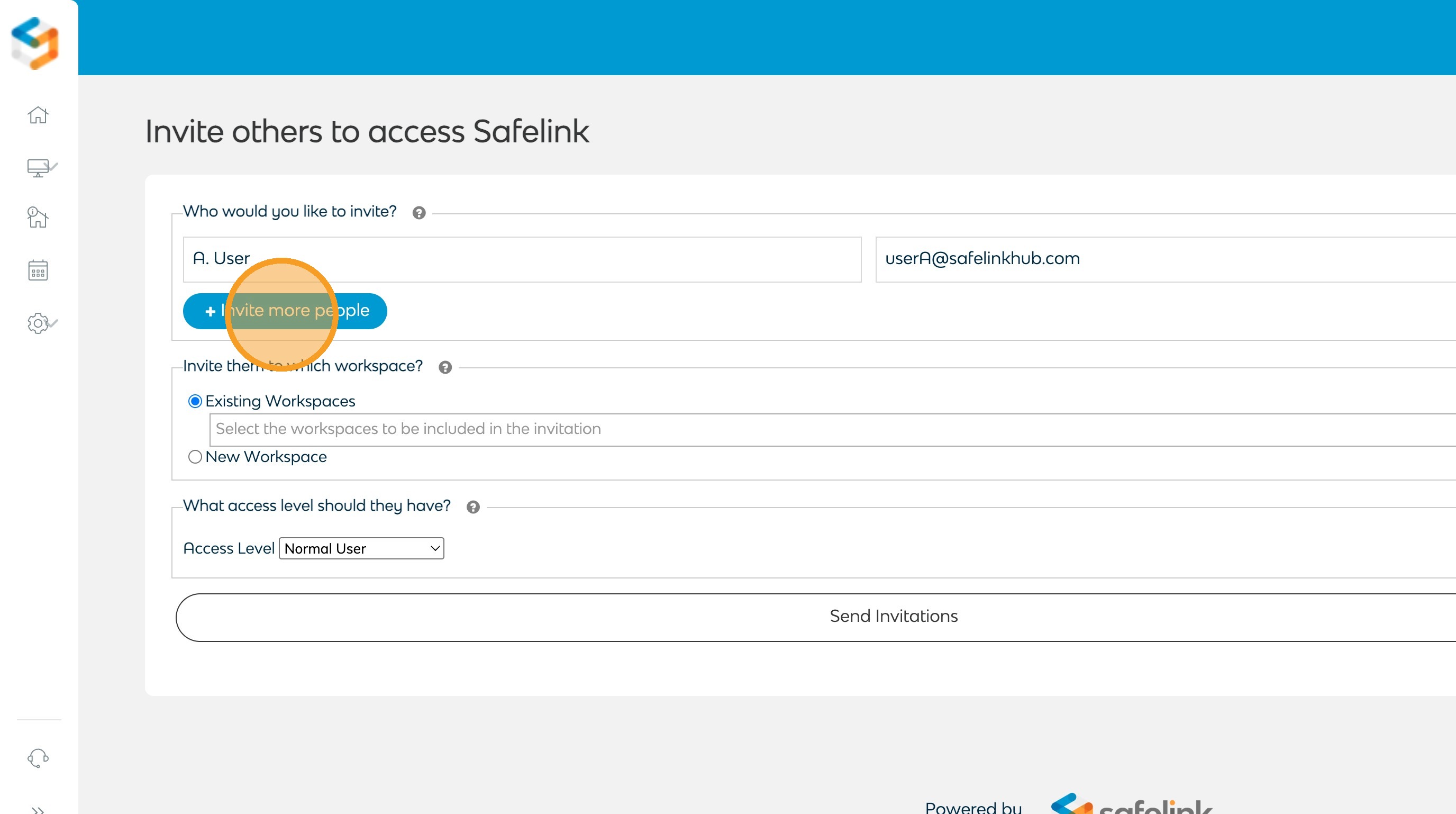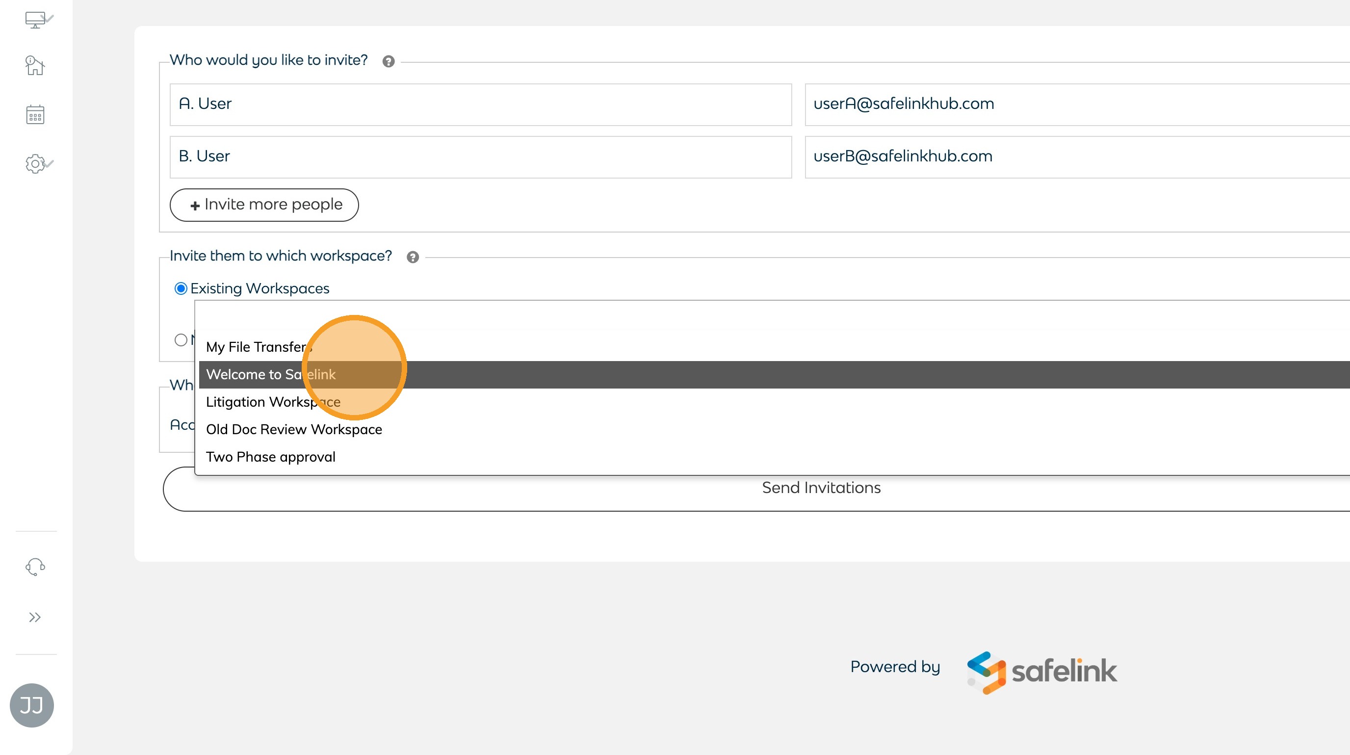 - Click Send Invitations to invite the users. The users will receive an email invitation to the selected workspaces.