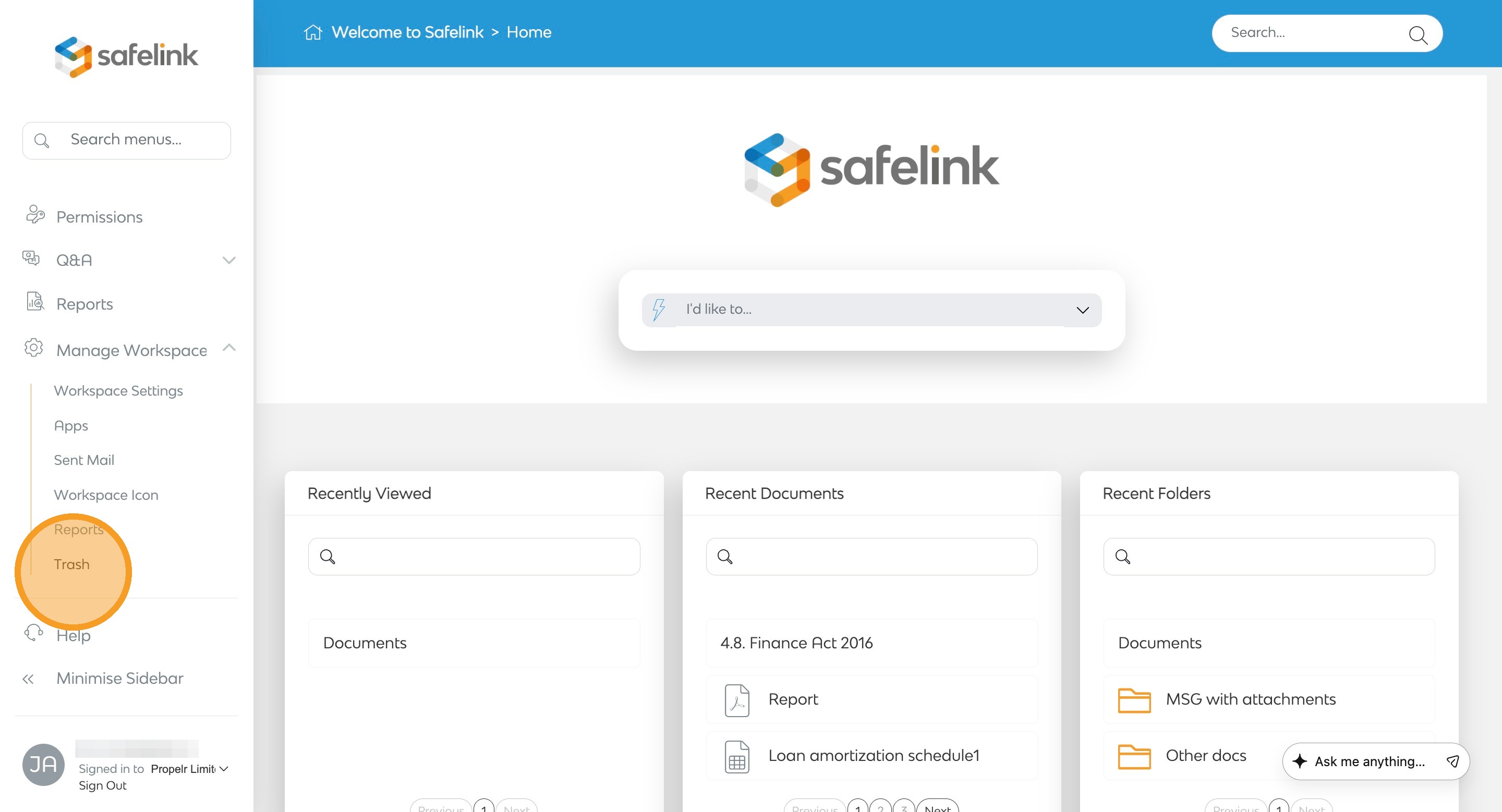 - Click Trash.