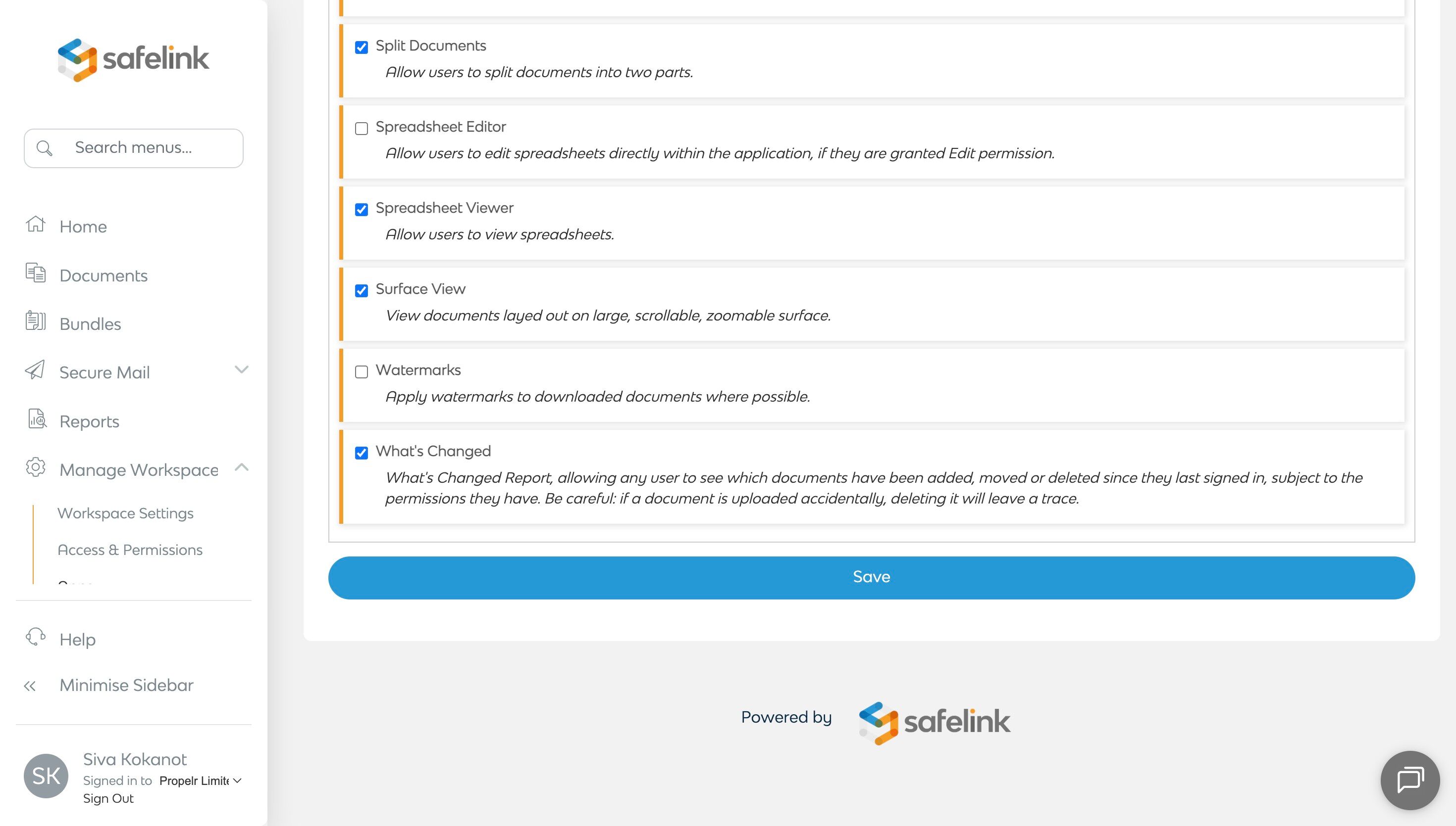 - Click Manage Workspace.