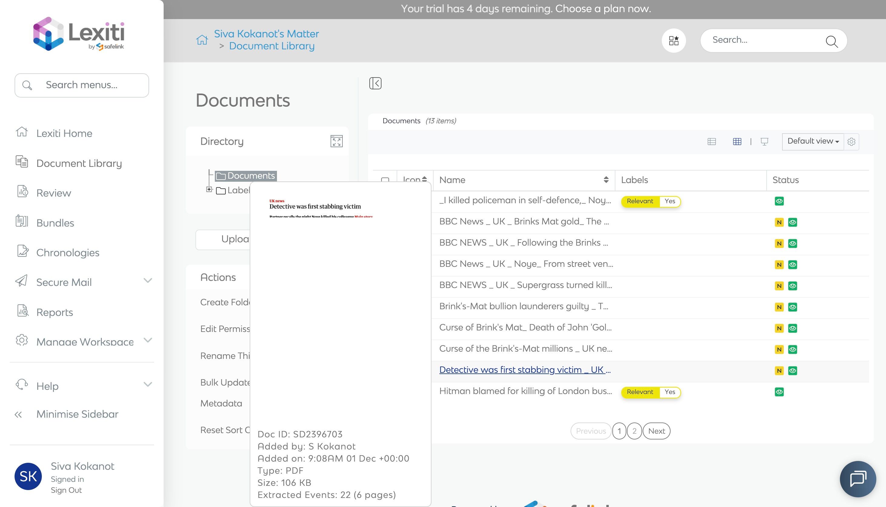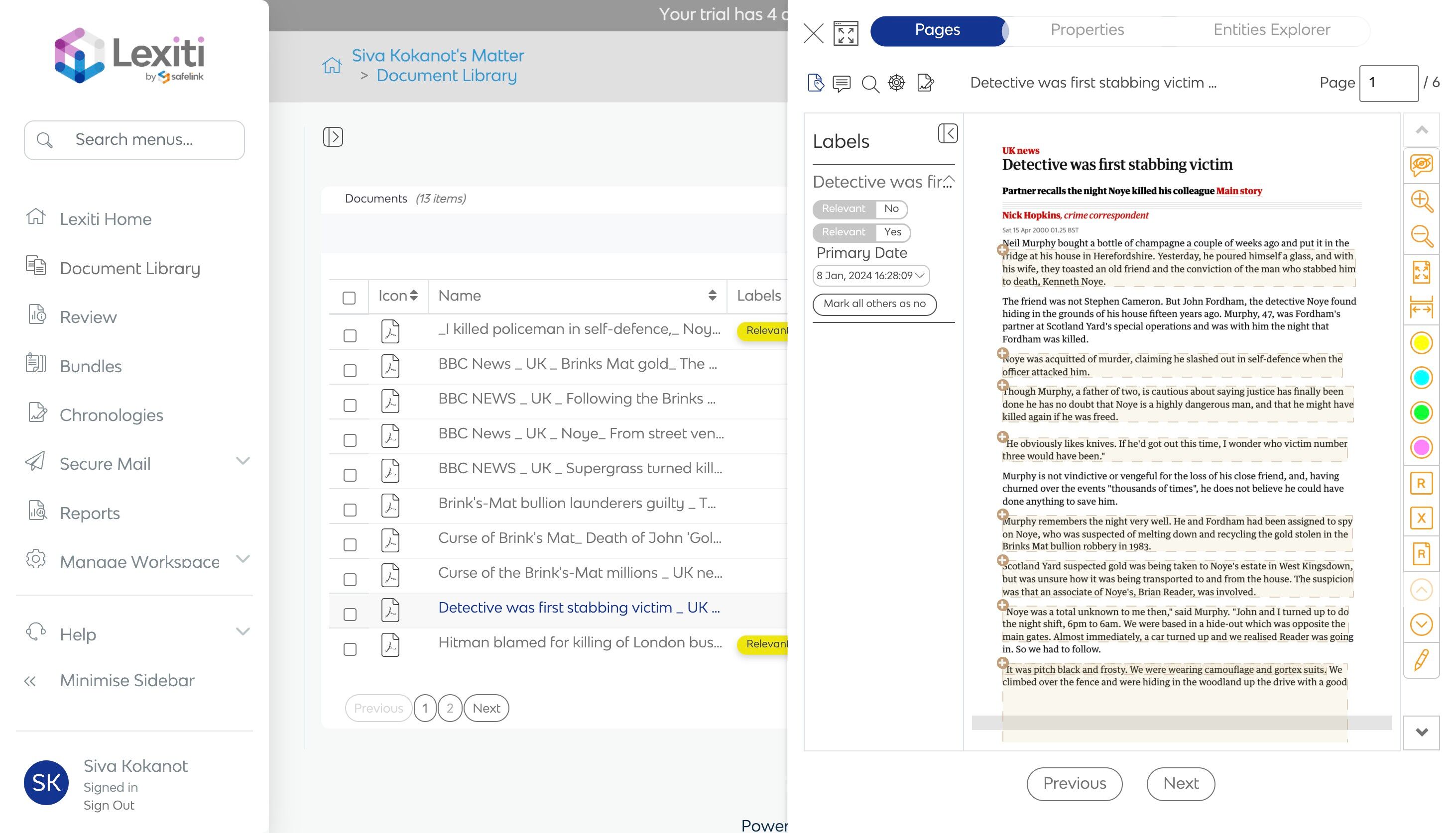 Workspace Admins can set up custom fields to tag and add metadata to documents. Once these fields have been set up, users can review and classify documents.