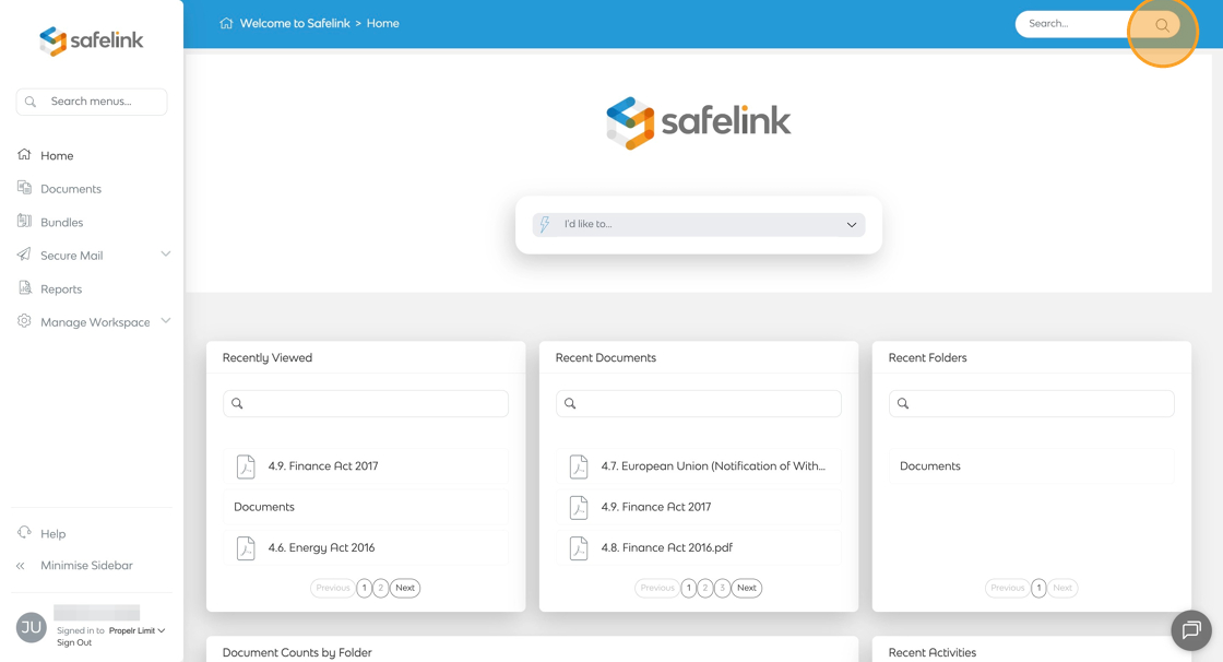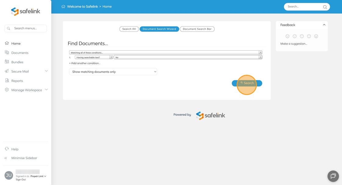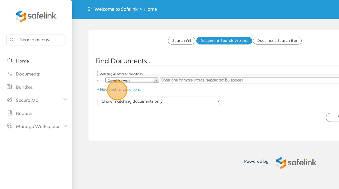 You can use Document Search Wizard to search for documents in your workspace. You can build a search string and add more search conditions depending on how specific you would like your results to be.