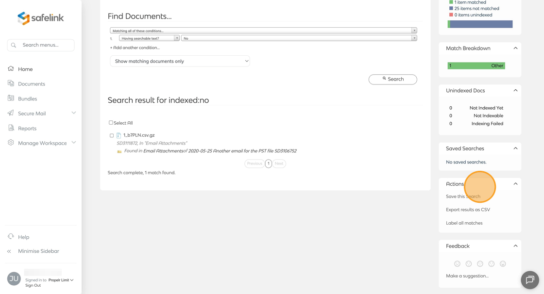- Tag these Results - This will tag the documents in your search results. Use the Actions Menu options to save, export, or tag your search results.