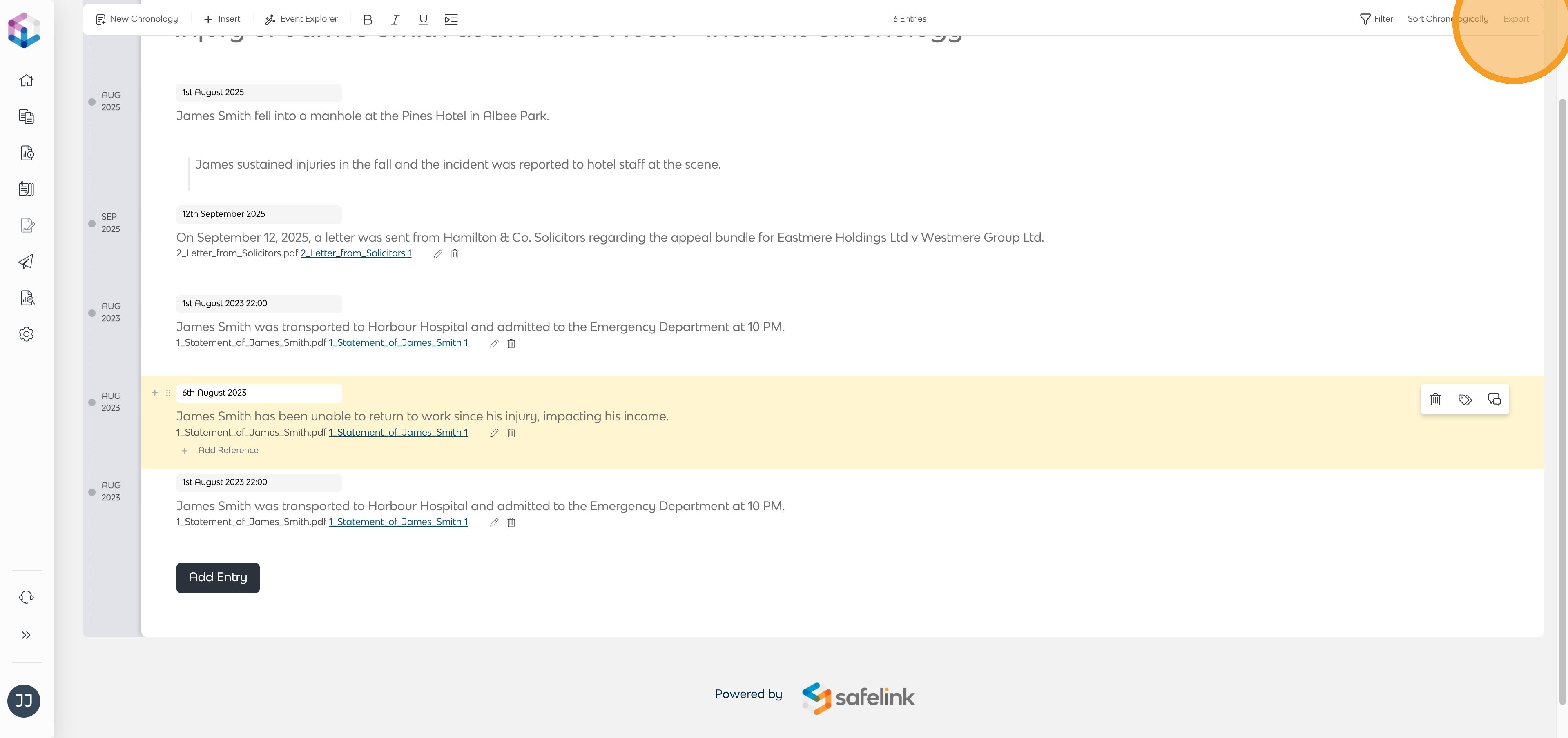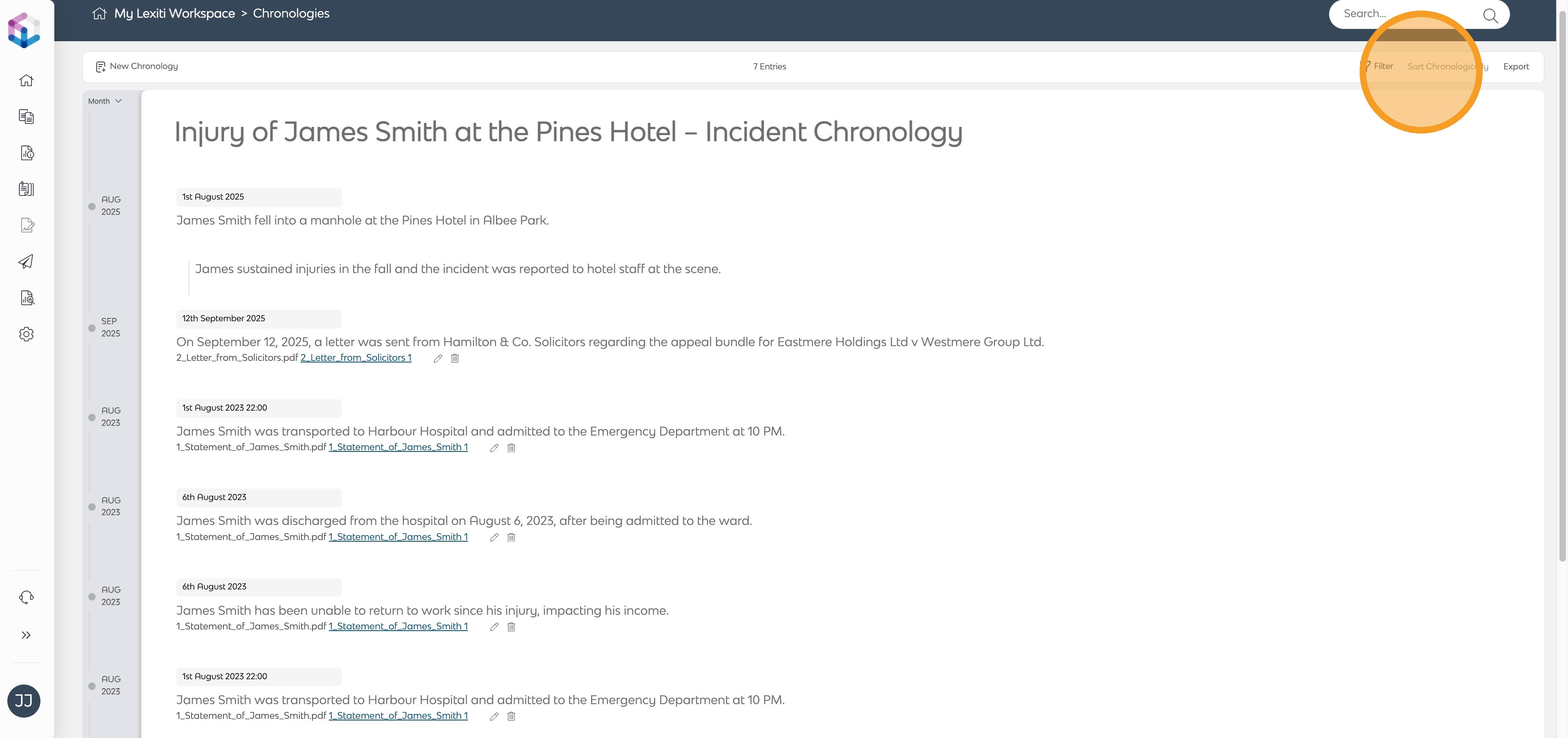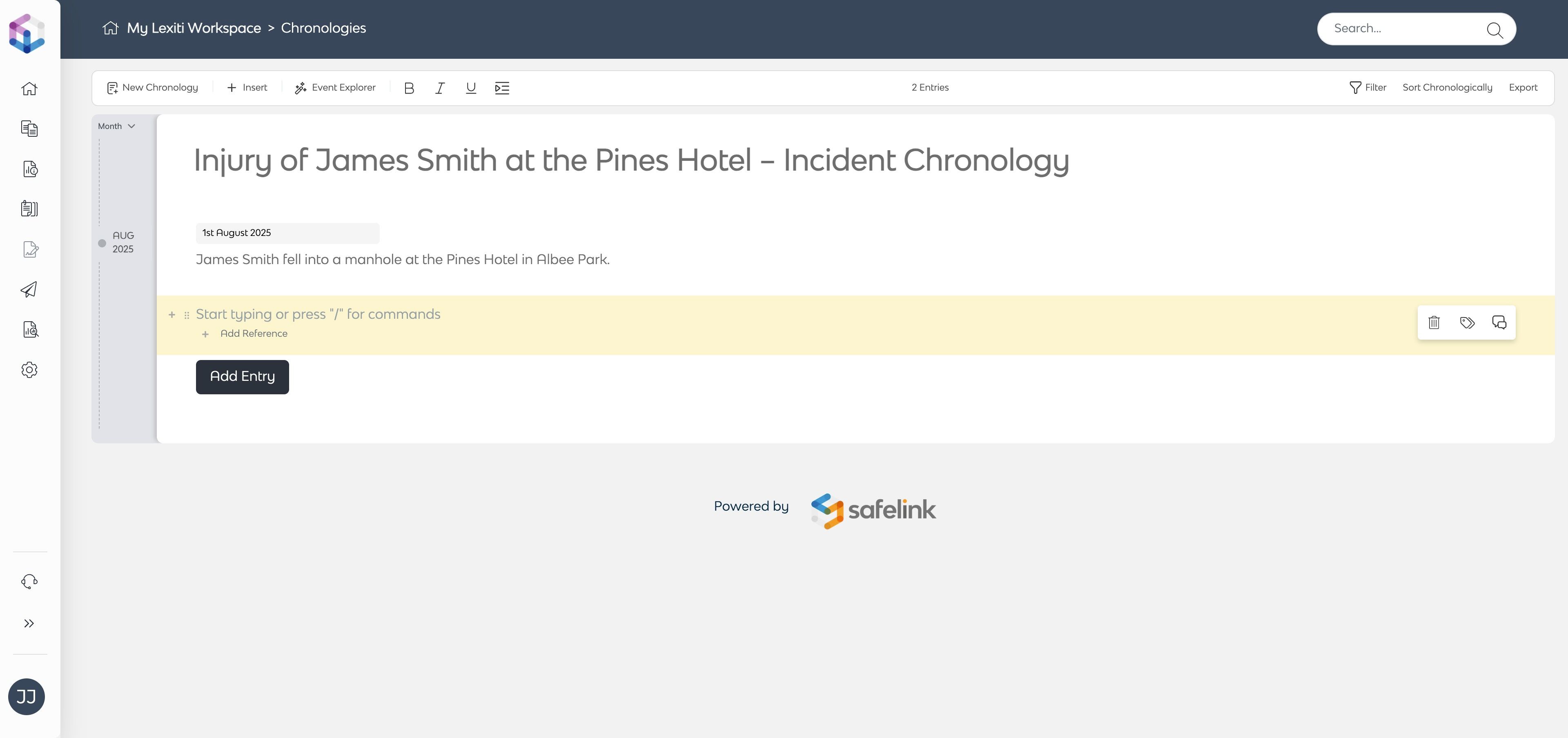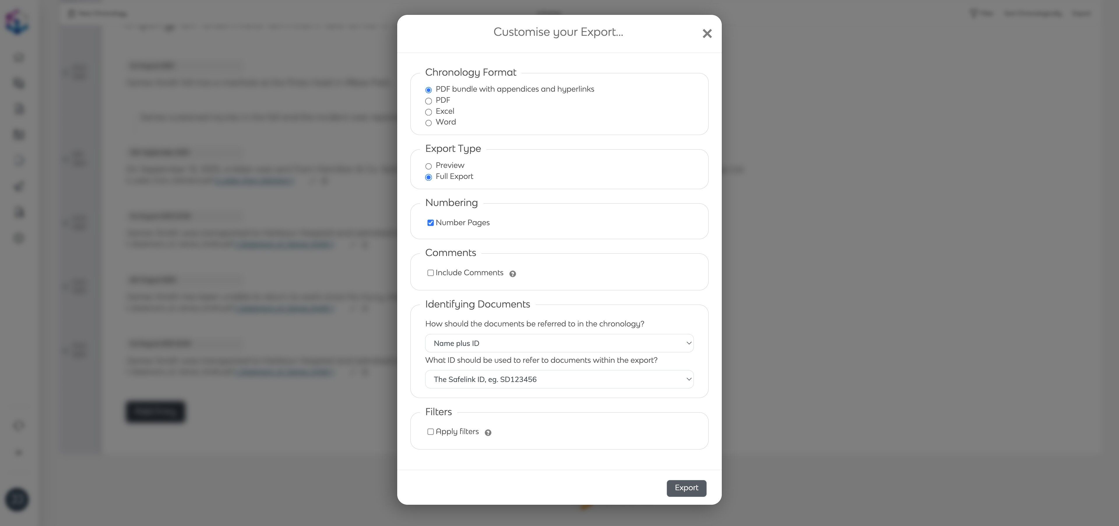 Once exported, your Chronology is ready to be shared, reviewed or included in case preparation. You can return at any time to update entries, add new documents, or re-export the Chronology as your matter progresses.