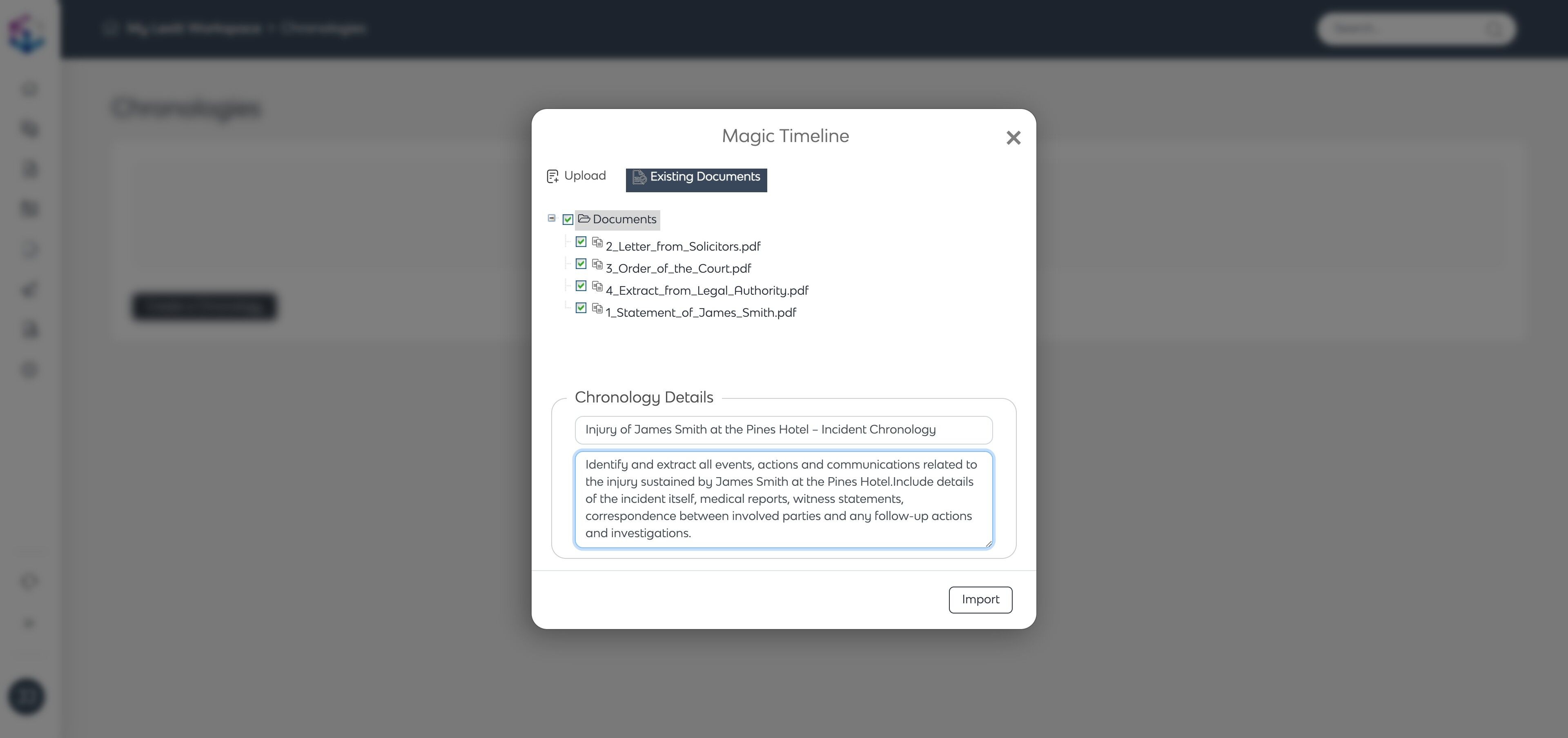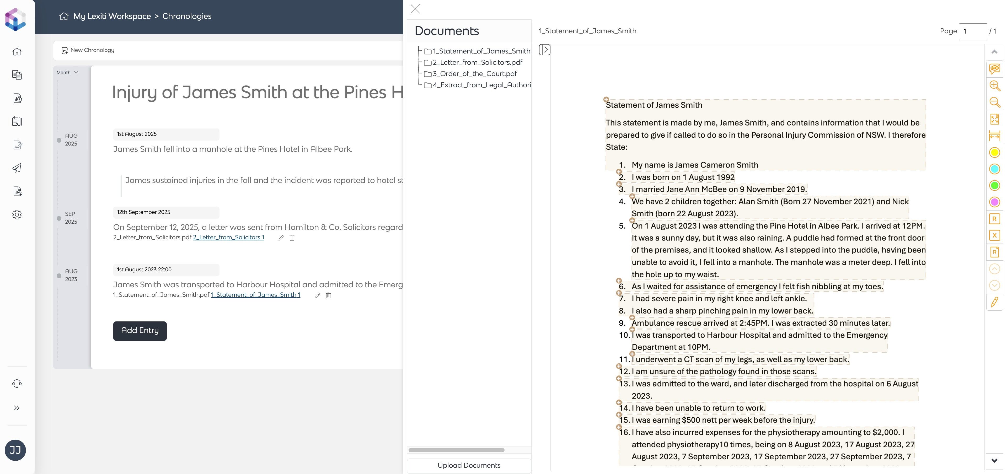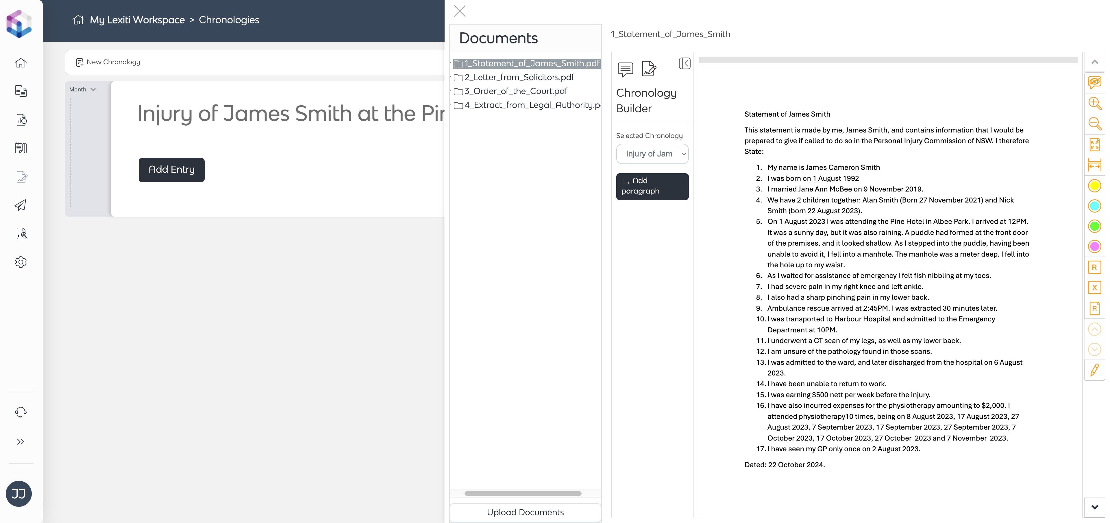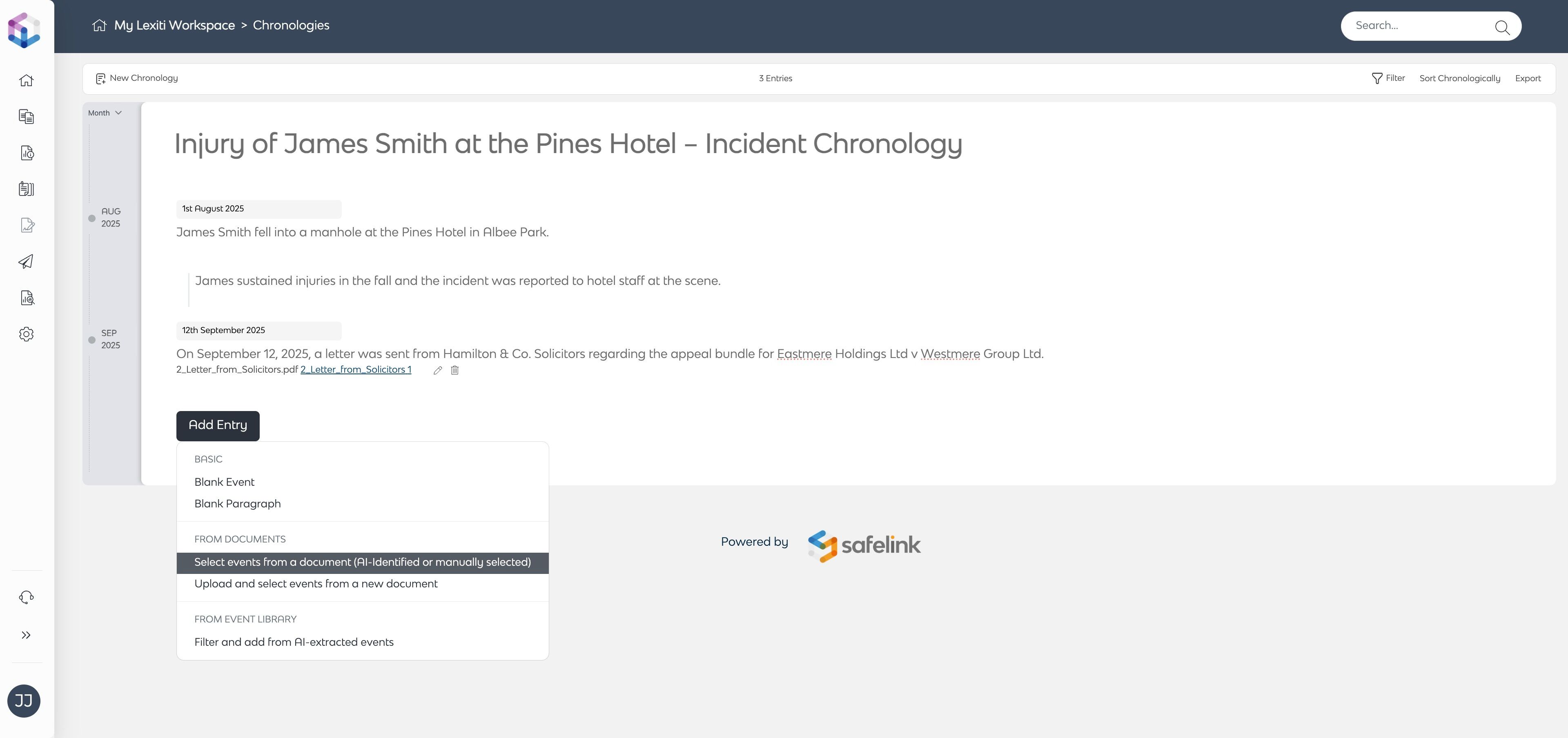 A step-by-step guide to producing a custom Chronology in your Lexiti workspace through uploaded documents and automated event extraction.