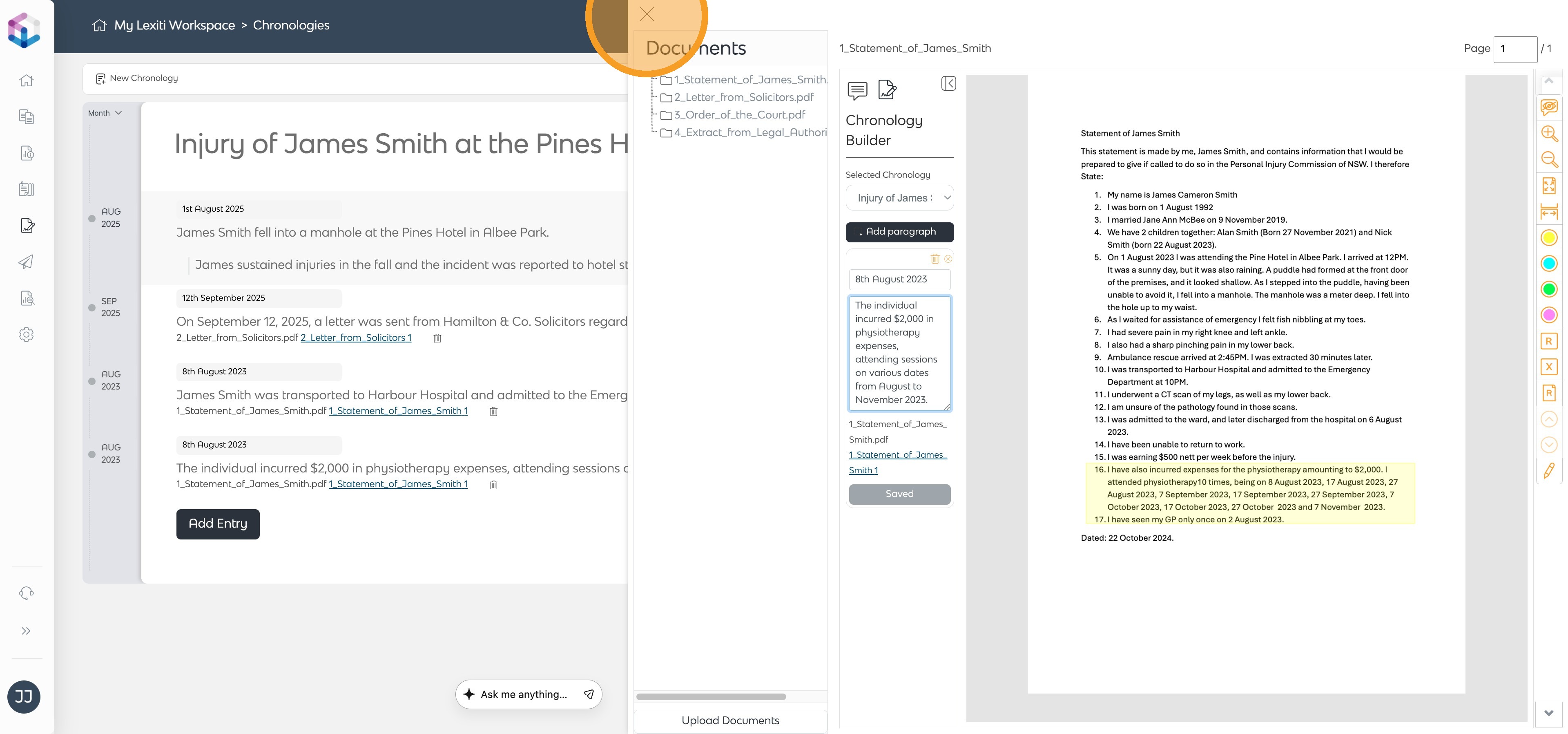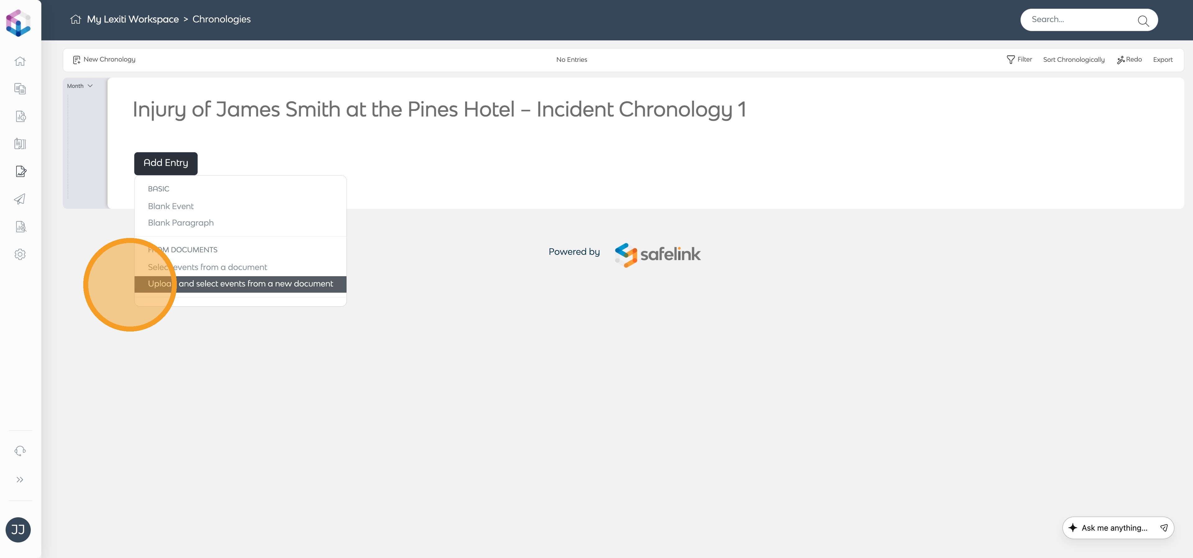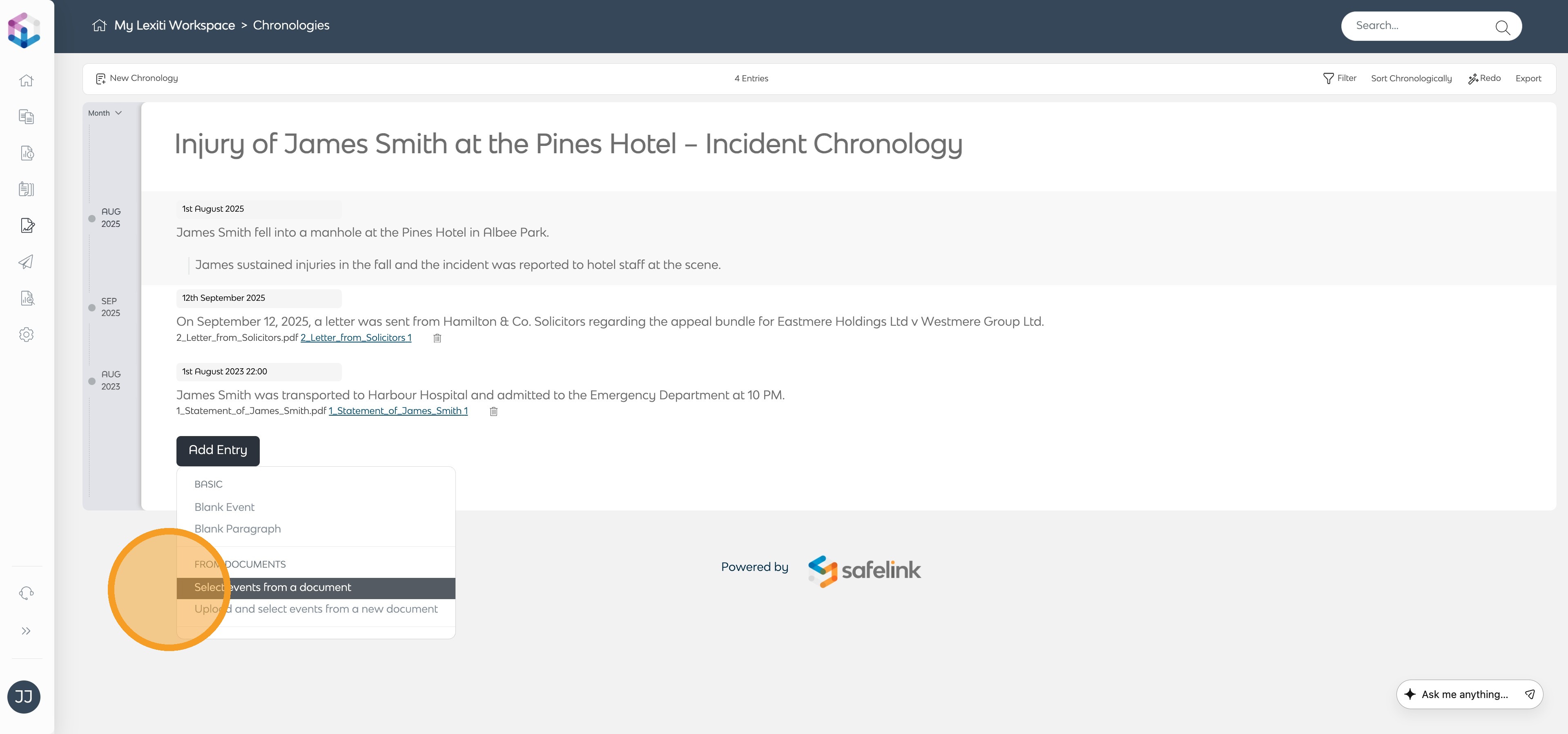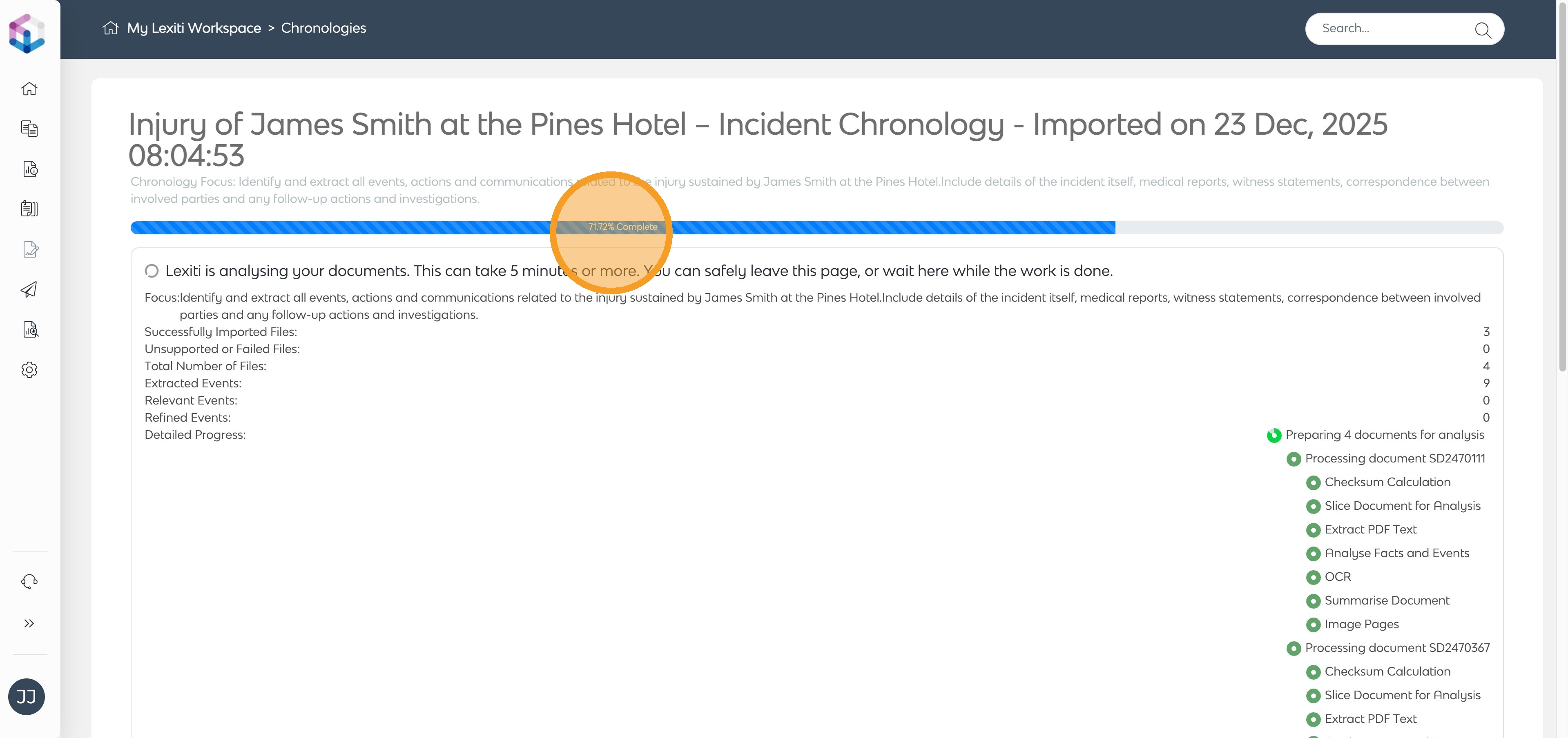 A step-by-step guide to producing a custom Chronology in your Lexiti workspace through uploaded documents and automated event extraction.