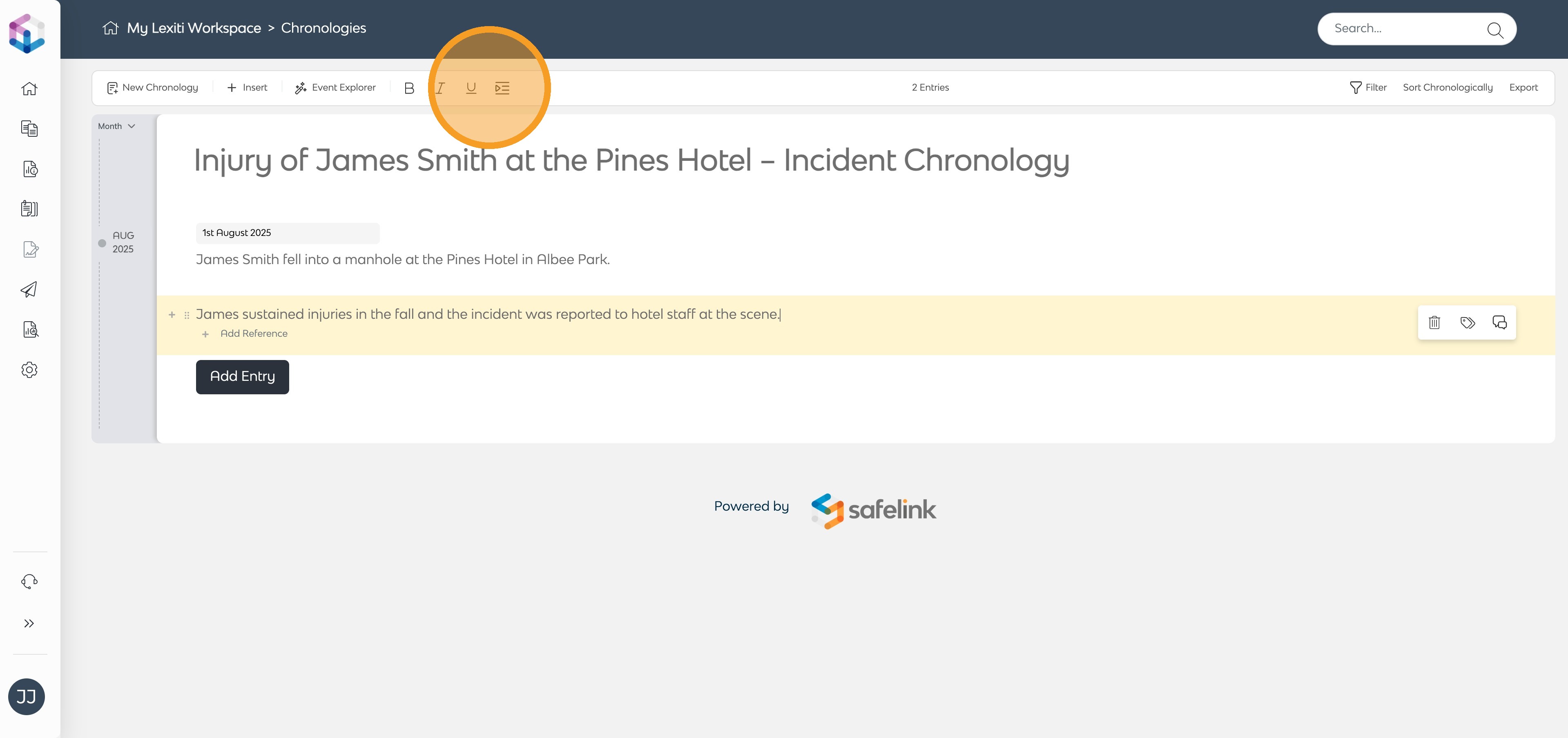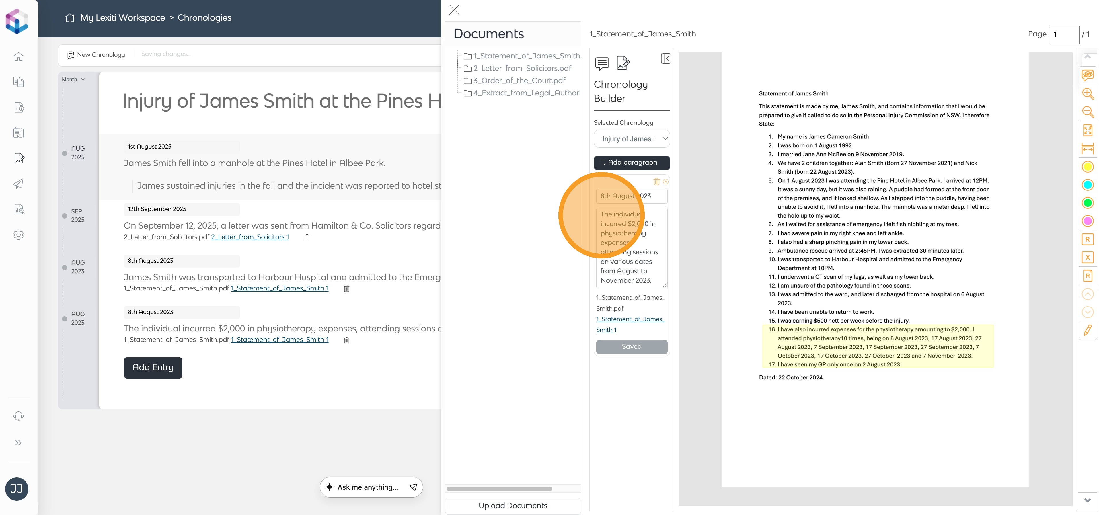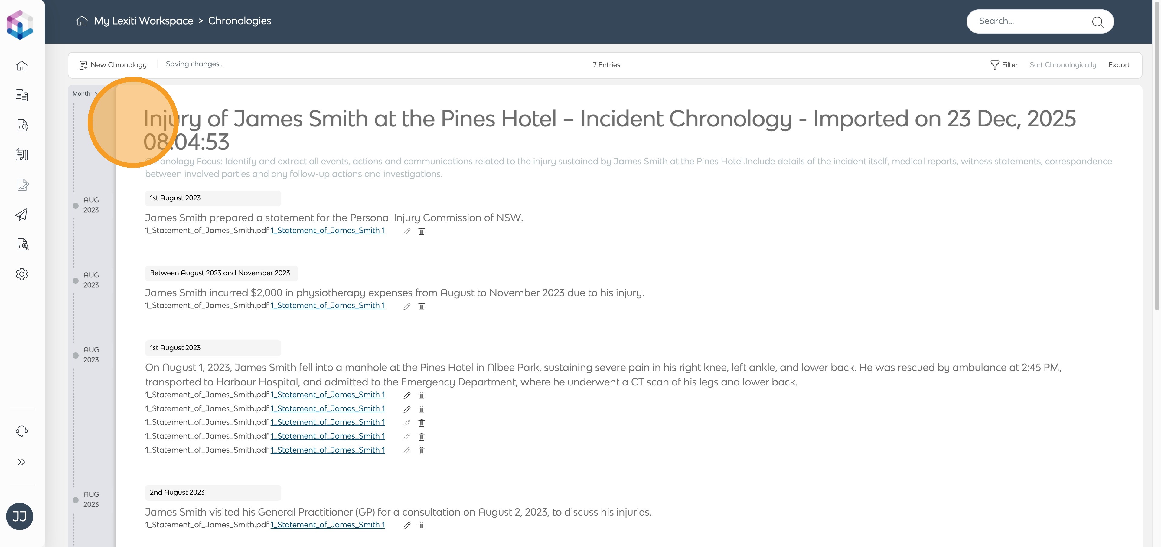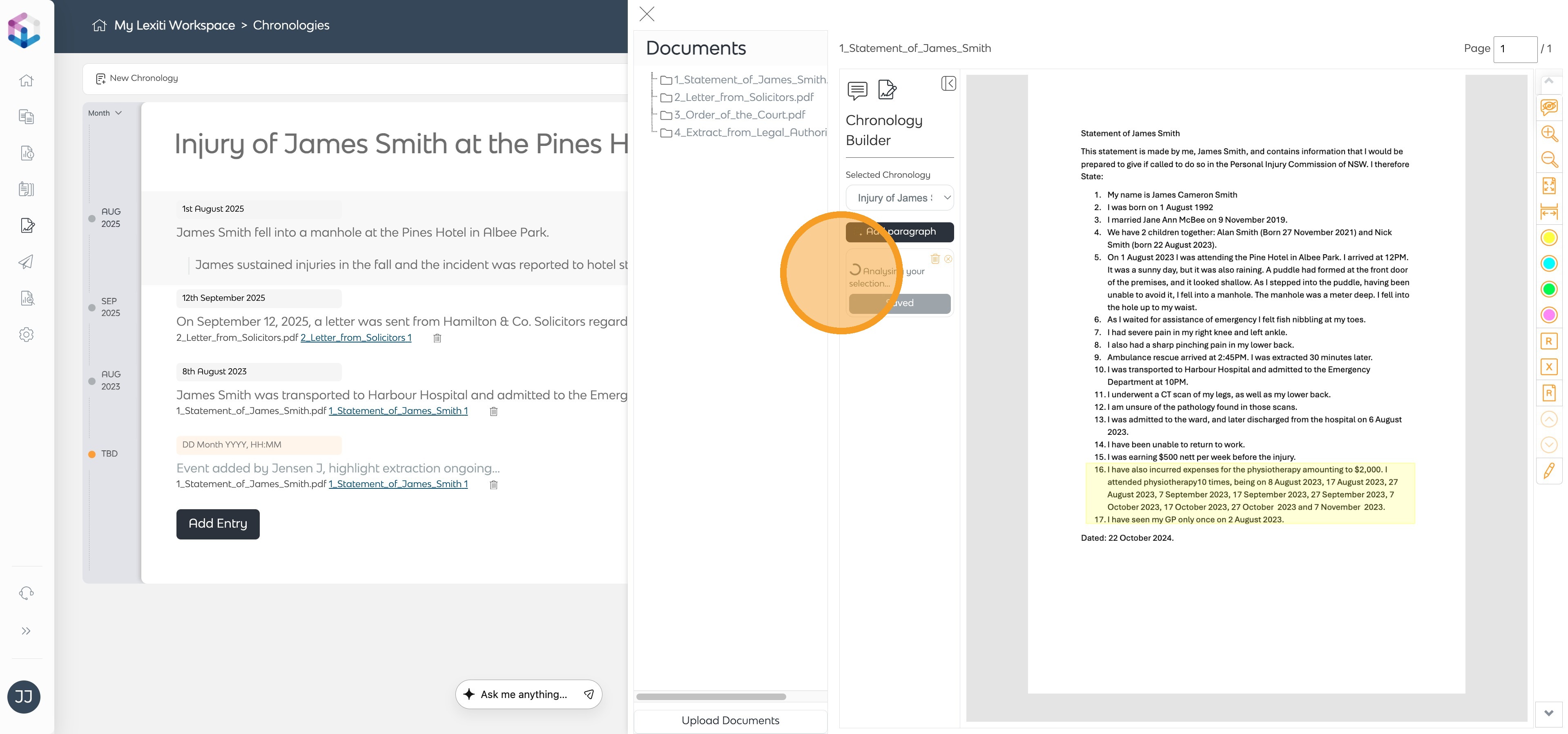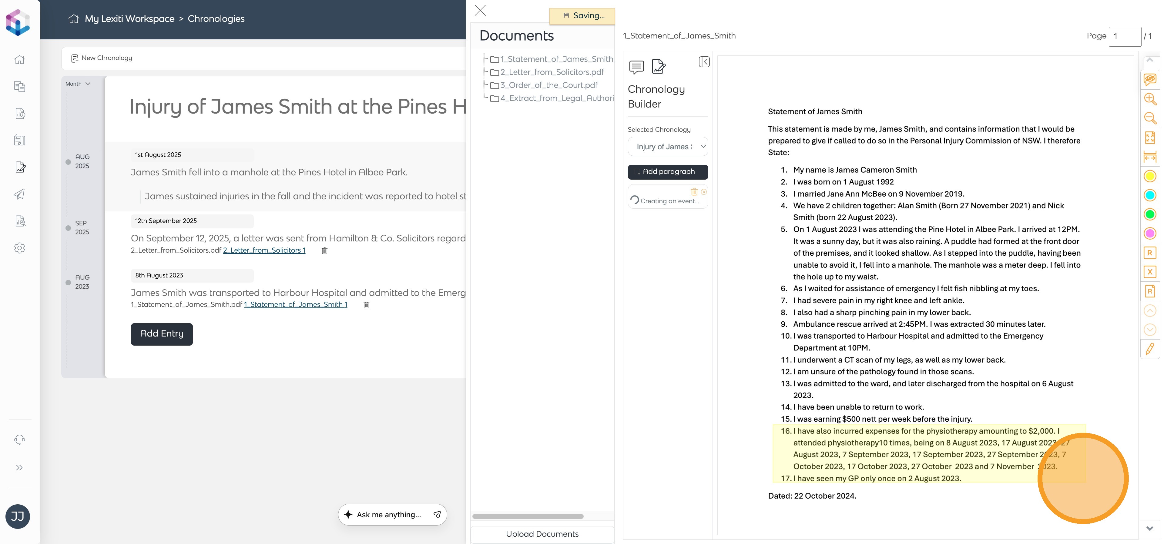 - The system will automatically extract the event from the section and add it to your chronology.