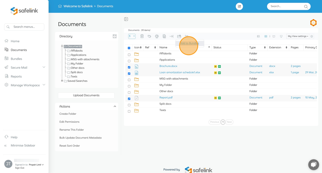 - To begin, tick the boxes next to the document(s) you would like to add to your bundle.