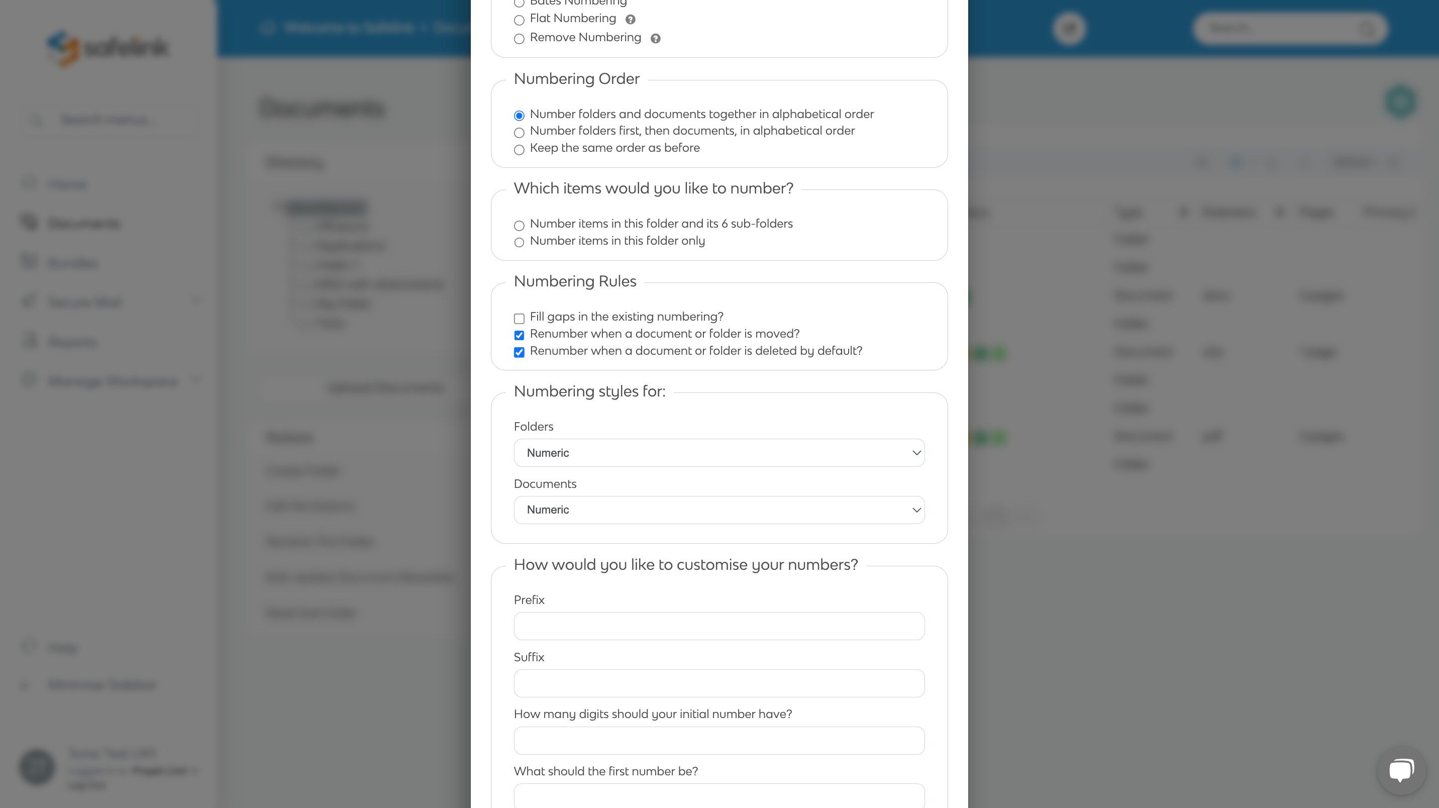 - Keep the same order as before - This will apply numbers to the current document and folder arrangement. It is possible to manually arrange your documents and folders before numbering.
