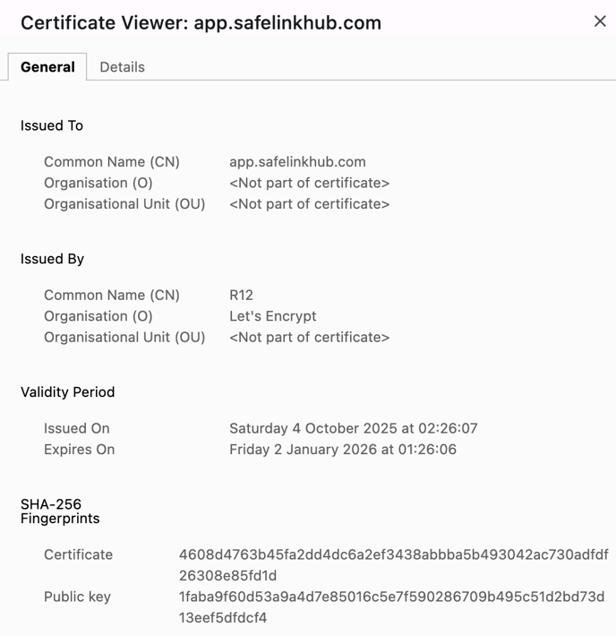 You can determine whether there is a corporate proxy in place by looking at the certificate issued for Safelink by clicking on the padlock icon next to the URL bar. The certificate will have an issuer. If the issuer is R12, it's likely correct, and there is no proxy. If the issuer is anything else, there is a proxy in play, and the firm's IT team can add an exception for the Safelink domain. Please get in touch with us if you need further assistance.