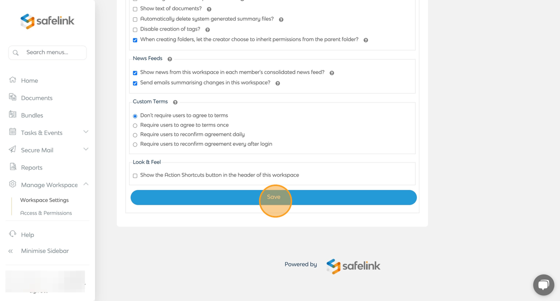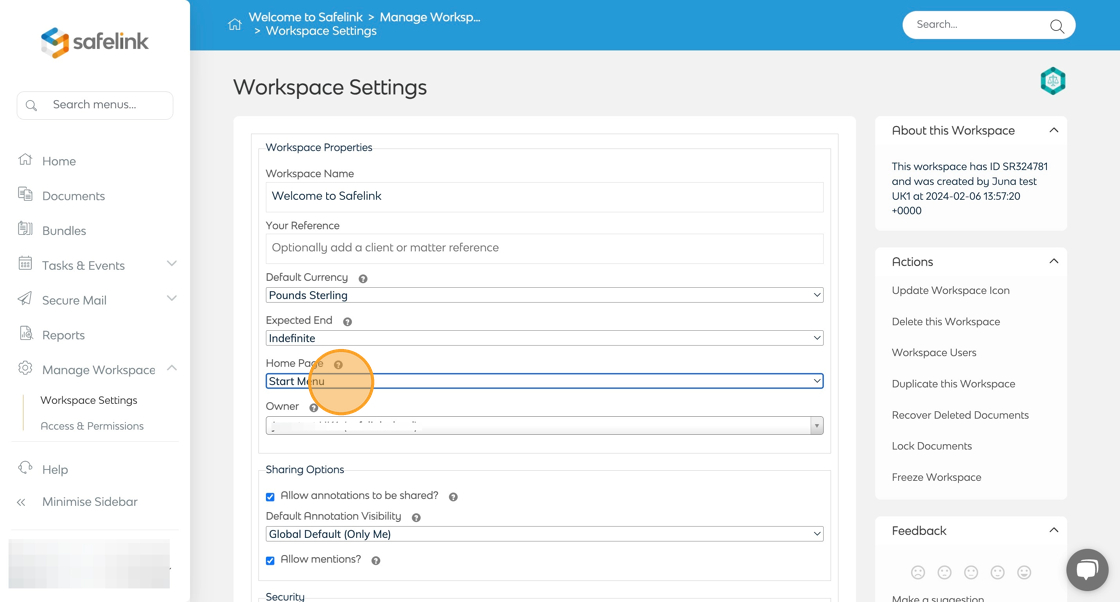 - You can set a particular document, folder or page for users to land on when accessing your workspace.
